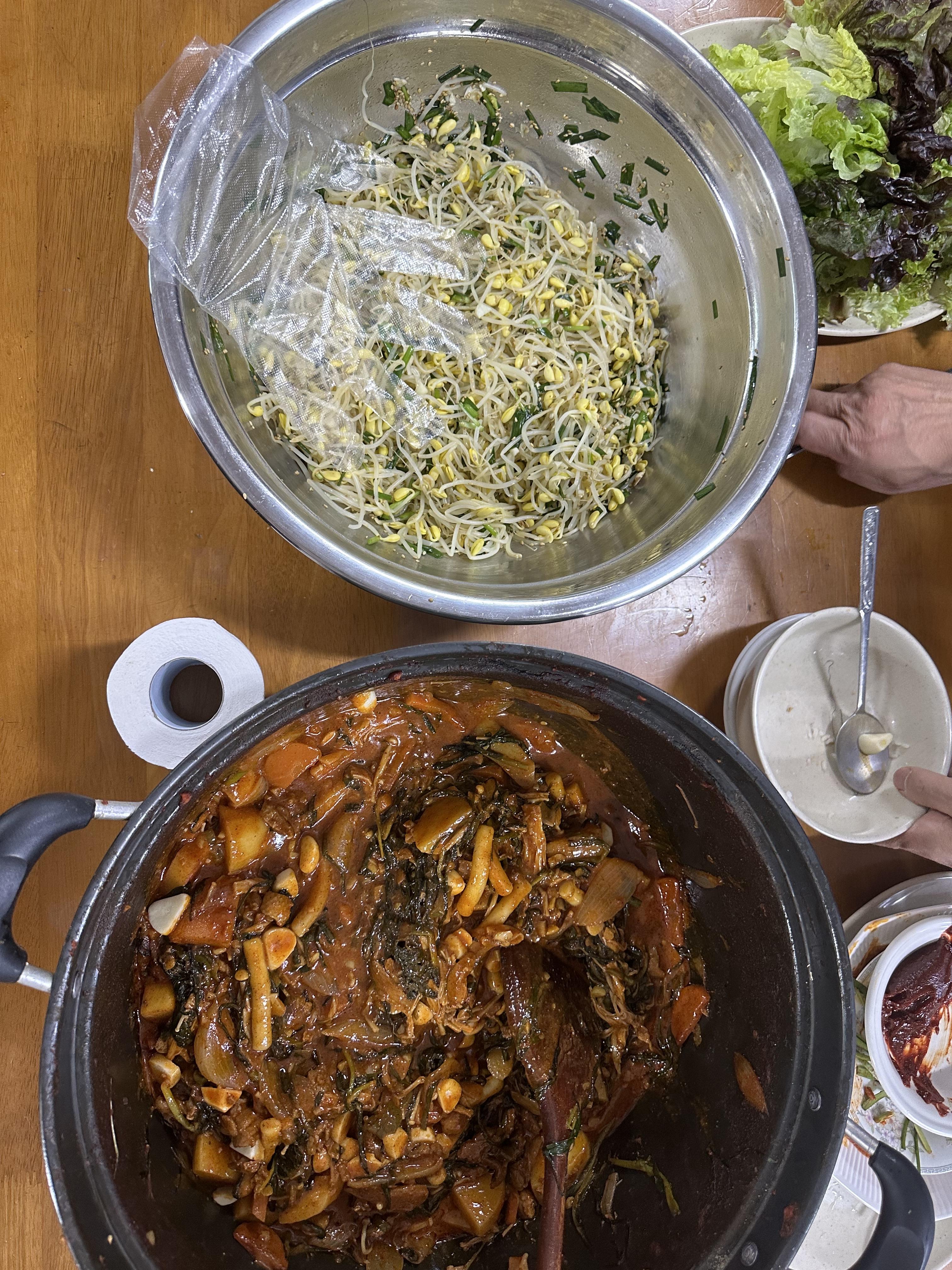 오늘도 도란도란 함께 만든 음식으로 식사했습니다.