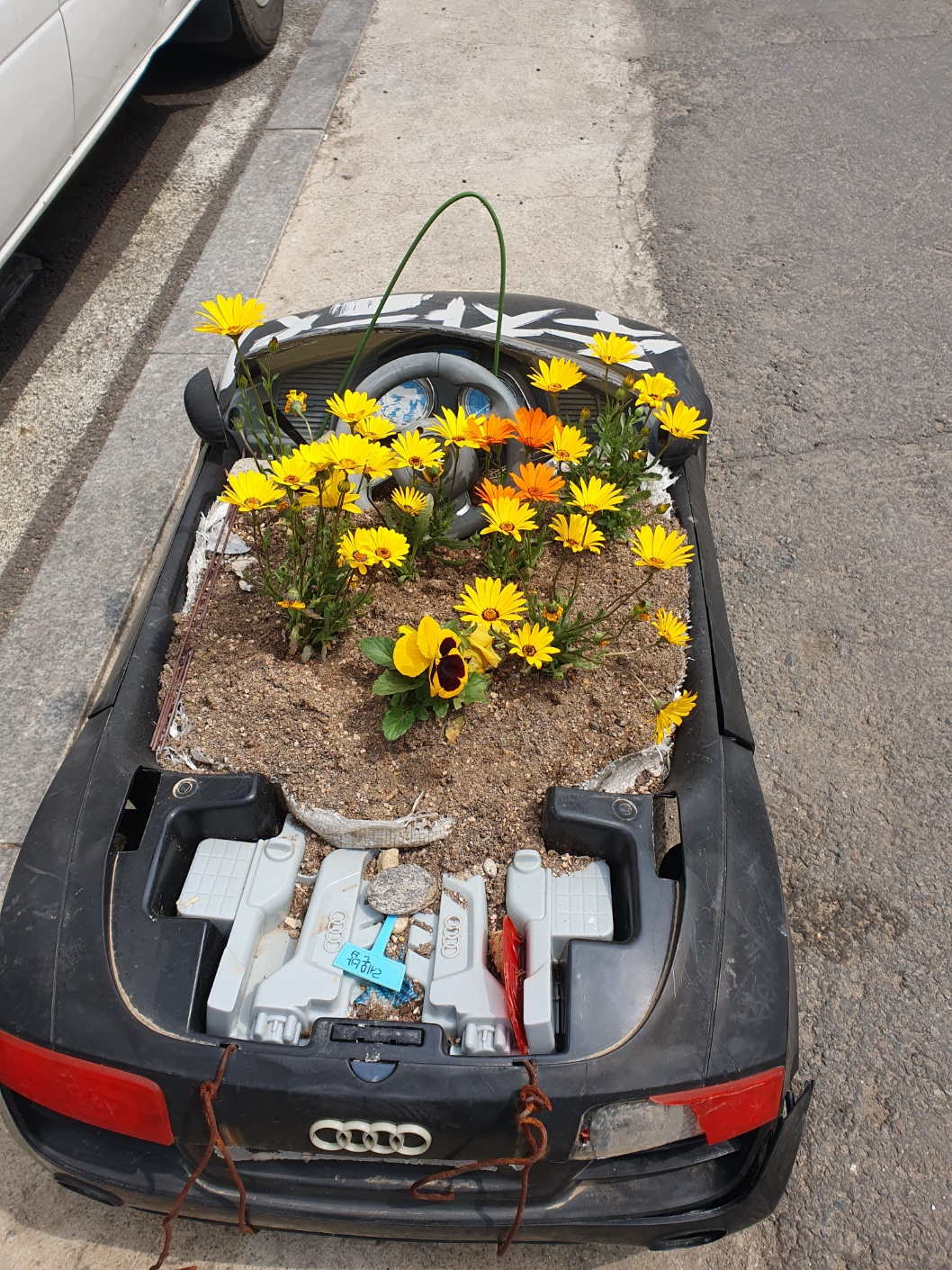 쓰레기 더미 옆에 예쁘게 작은 화단을 만들어 놓은 주민분의 센스에 줍깅에 참여하던 아이들과 어른들