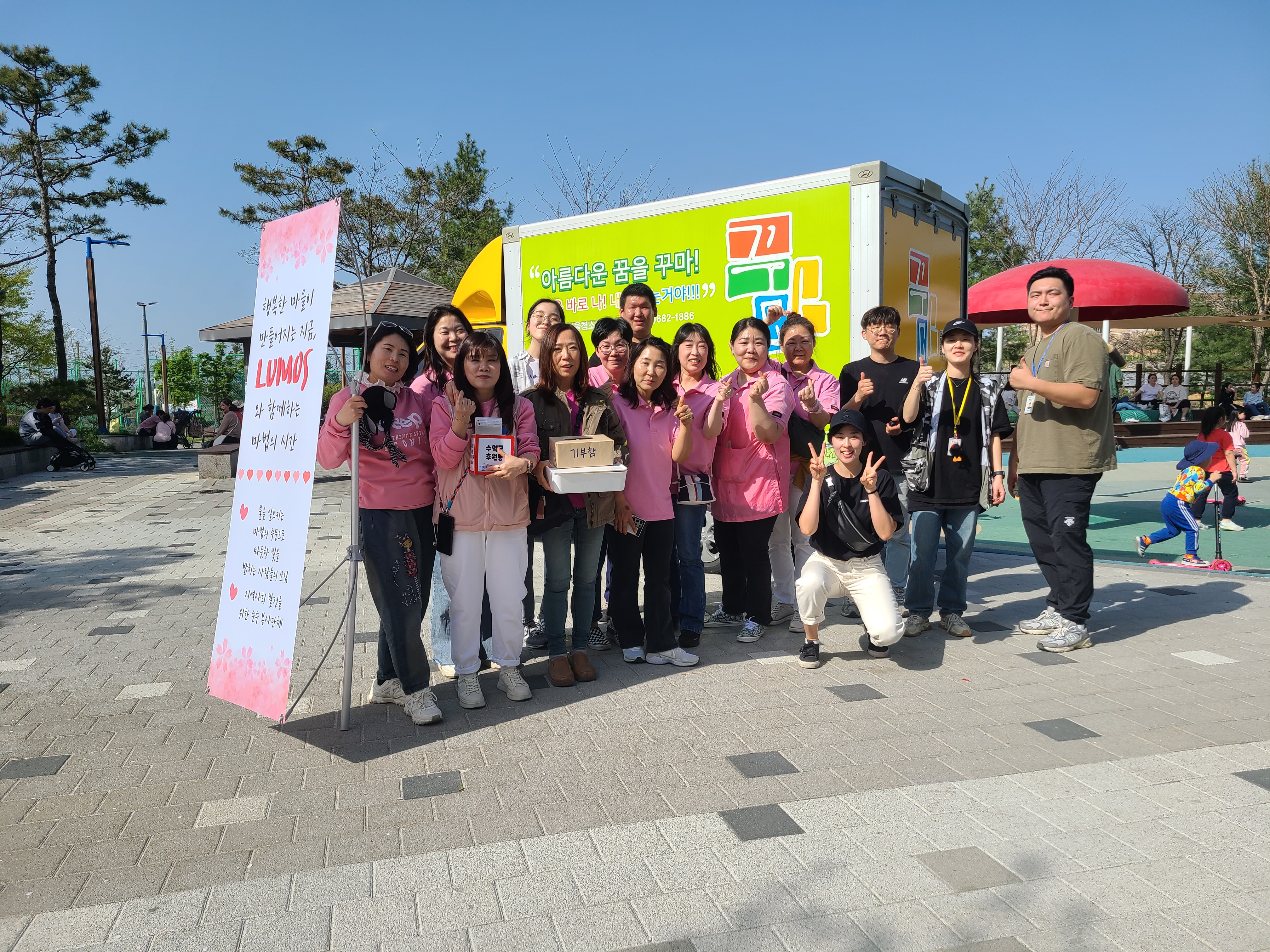 루모스 봉사단이 아침 일찍부터 공원에 모였습니다. 오늘이 바로 제 2회 루모스페스티벌이 열리는 날 이기 때문입니다.