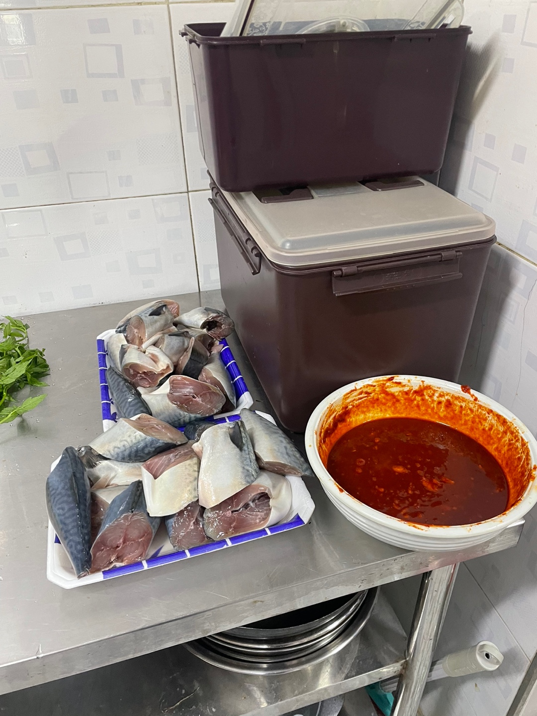 채소 손질부터 메인재료인 고등어와 양념까지 모두 직접 진행합니다.