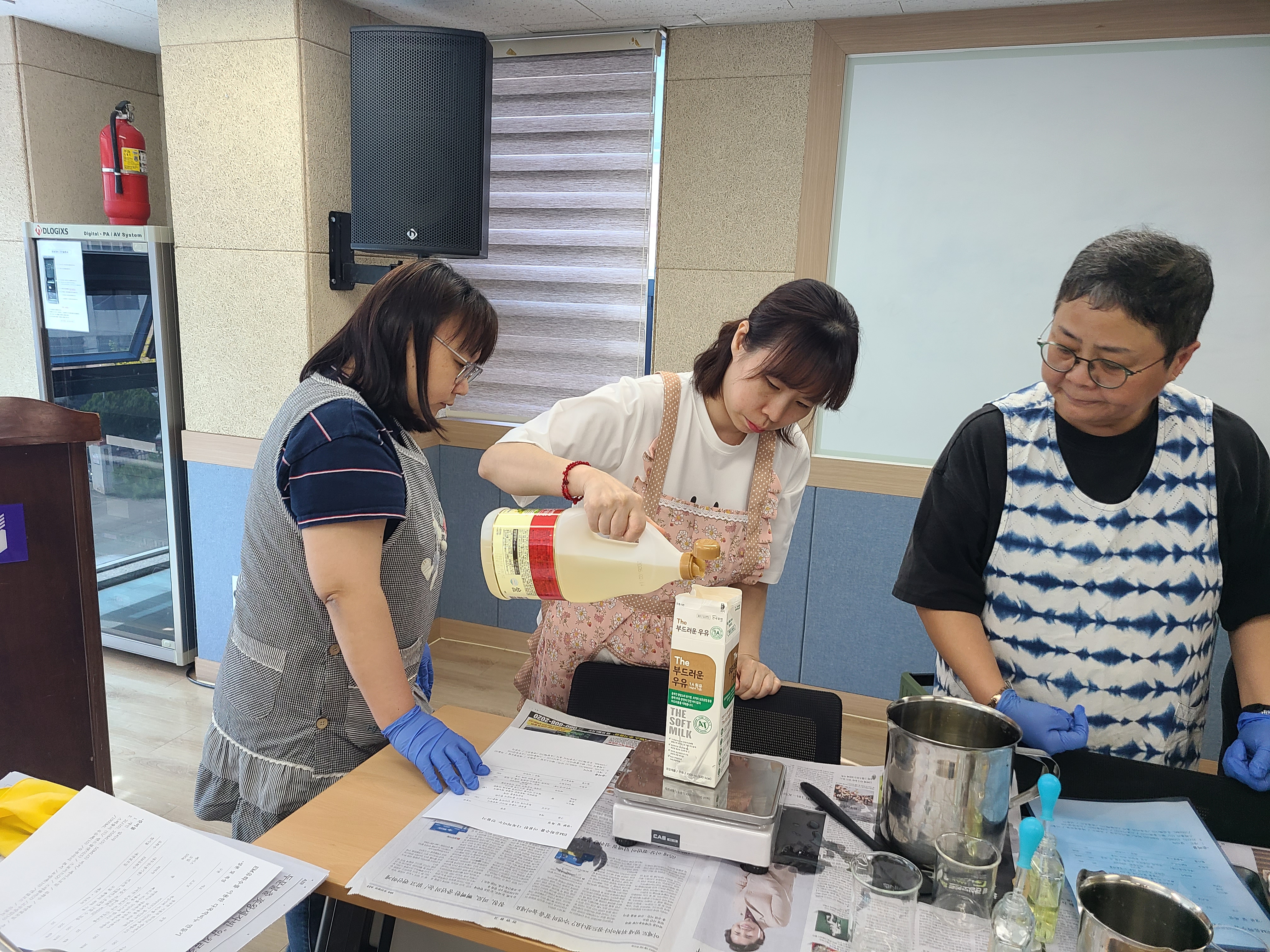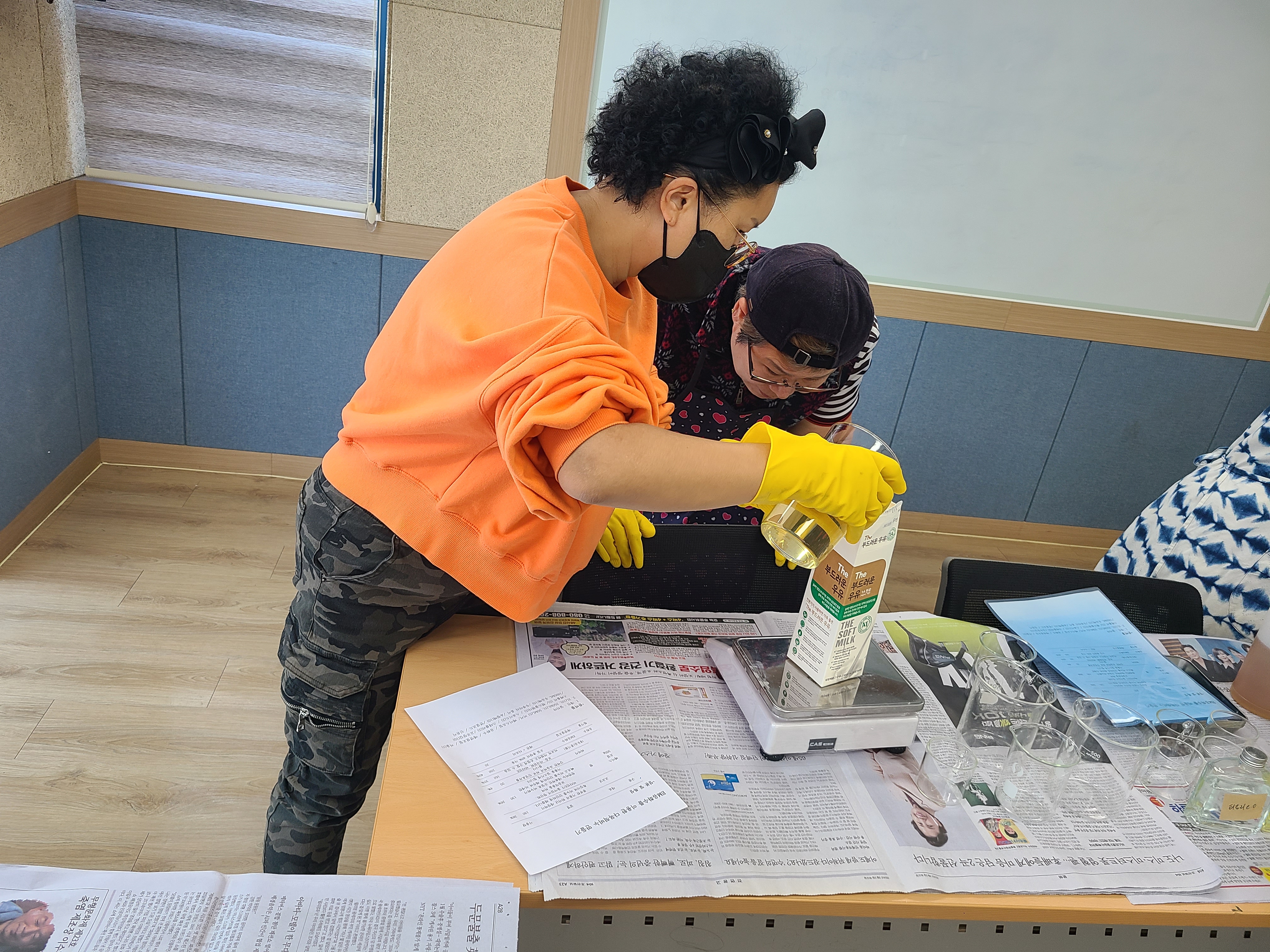 준비물을 계량을 합니다. 비누가 되는데 필요한 재료들과 향도 함께 나눴습니다.