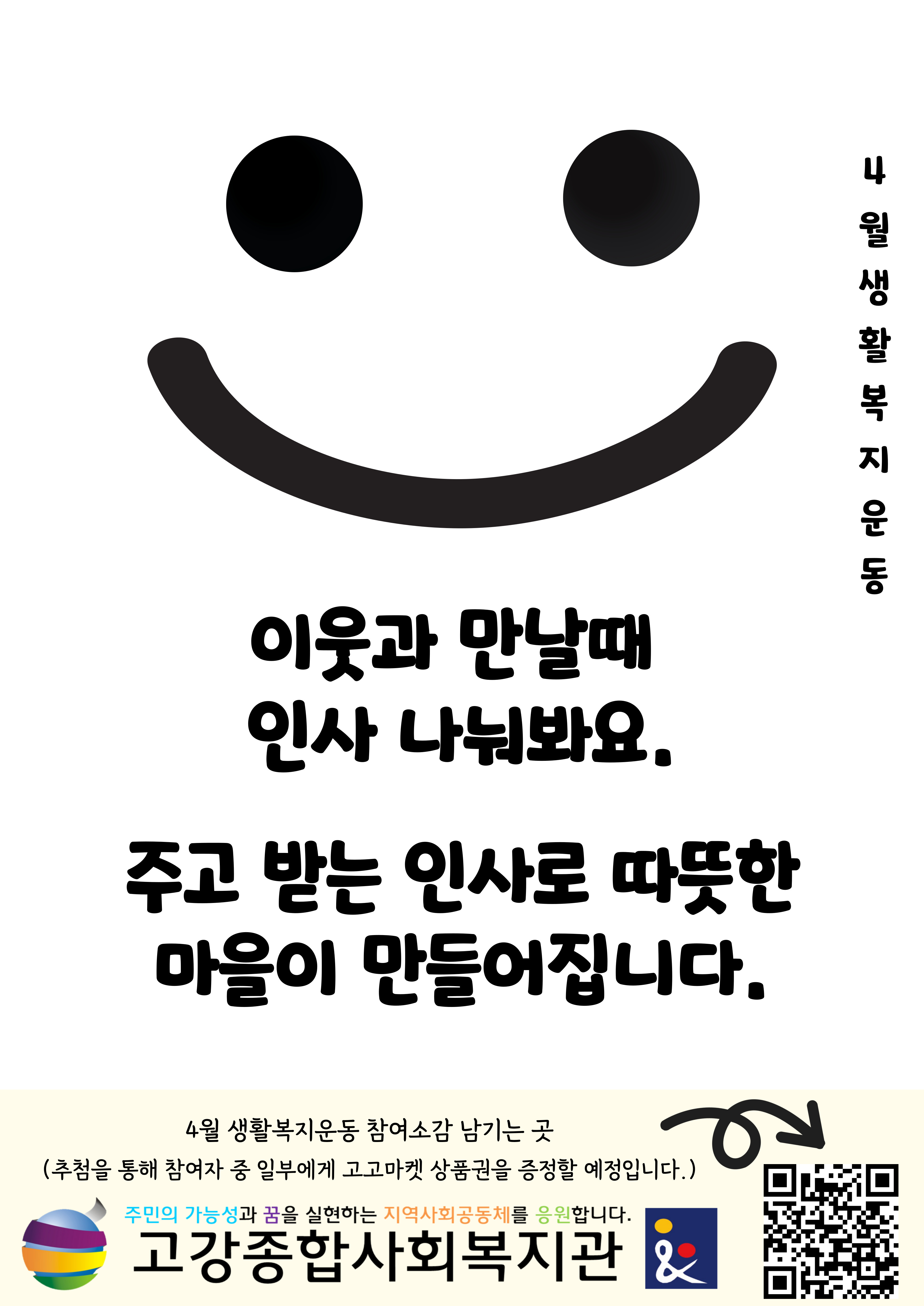 고강종합사회복지관은 위와 같이 우리 마을이 따뜻한 마을이 되길 바라는 마음으로 4월 한 달 동안 생활복지운동을 진행하였습니다.