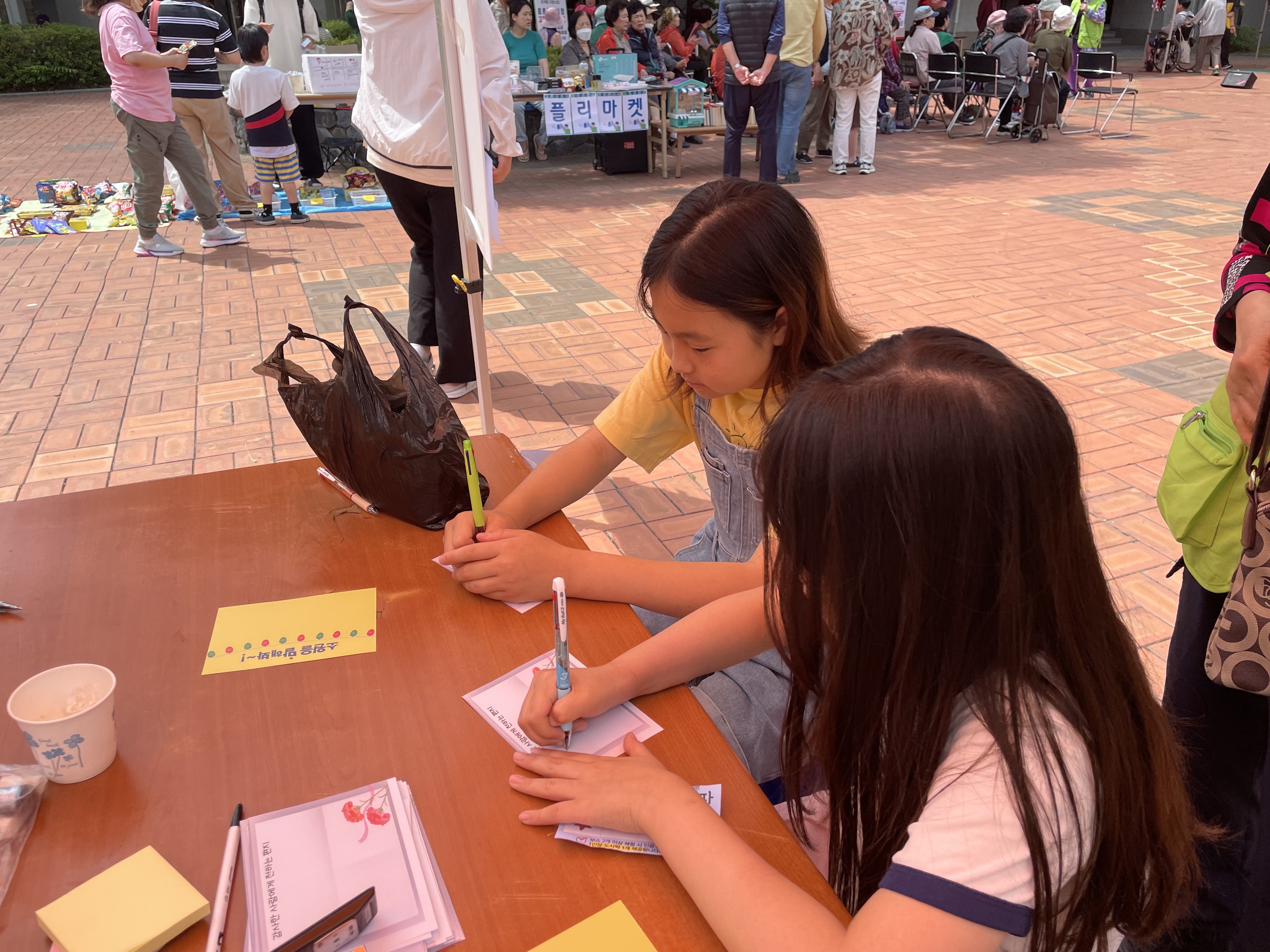 생활복지운동 부스에서는 감사편지 작성이 한창입니다.