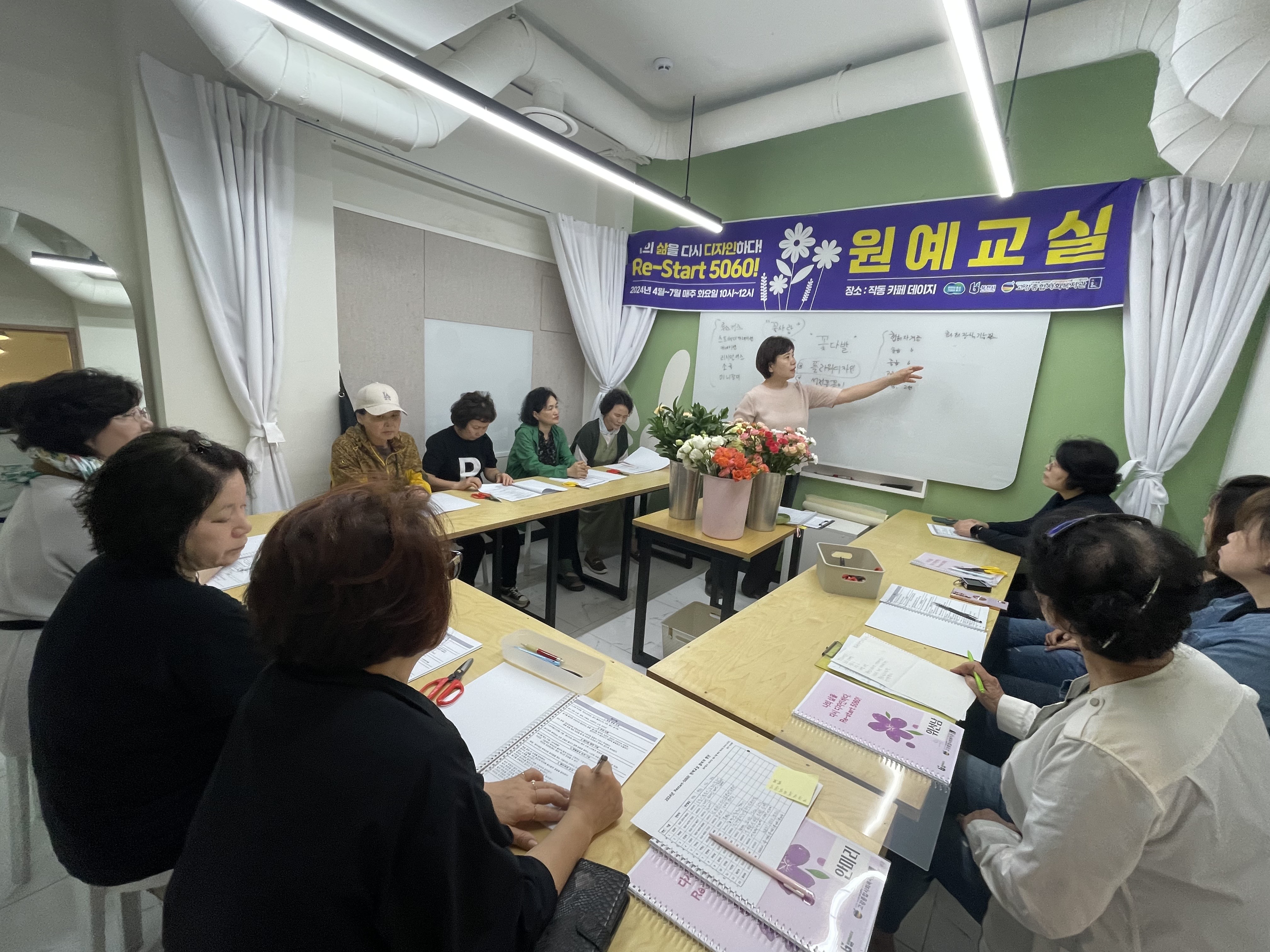 회기가 거듭할수록 참여자들은 단어 하나하나까지 필기하시며 ‘디자인 플라워’에 대해 한 걸음 더 가까워질 수 있었습니다.