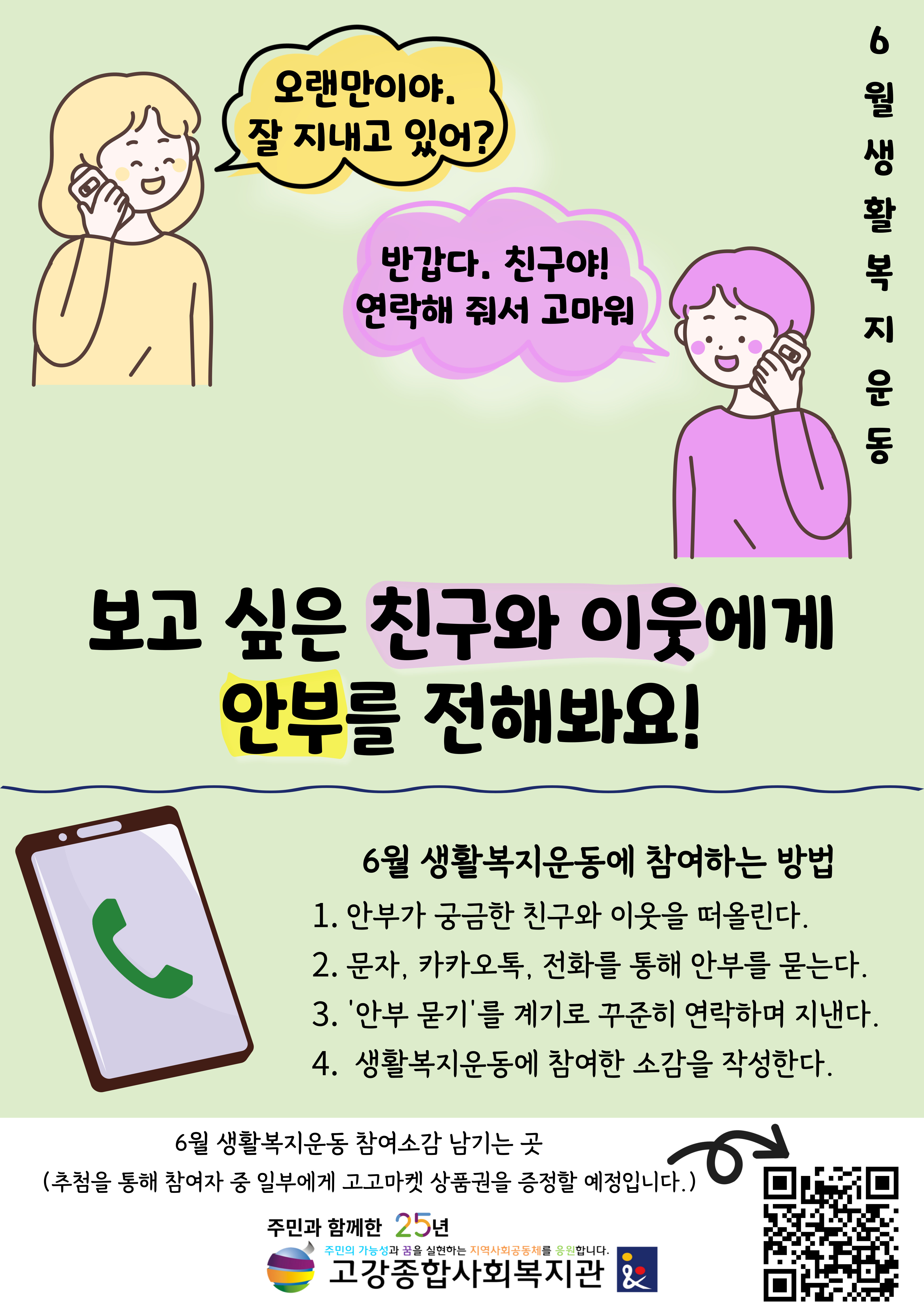 6월 한 달간 진행할 생활복지운동에 지역 주민들의 많은 참여 부탁드립니다~!