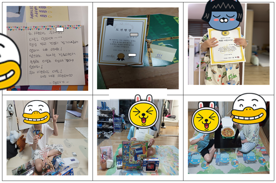 어머님들이 자녀에게 평사 시 전해주고 싶던 칭찬의 말을 상장으로 만들어 어머니의 손 편지를 더해