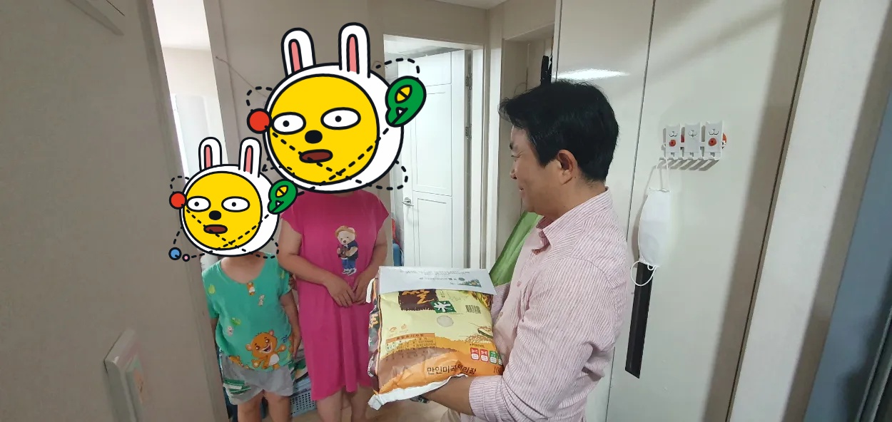 그리고 쌀 10kg 4가마를 후원해주셔서 필요하신 지역주민들께 전달했습니다.