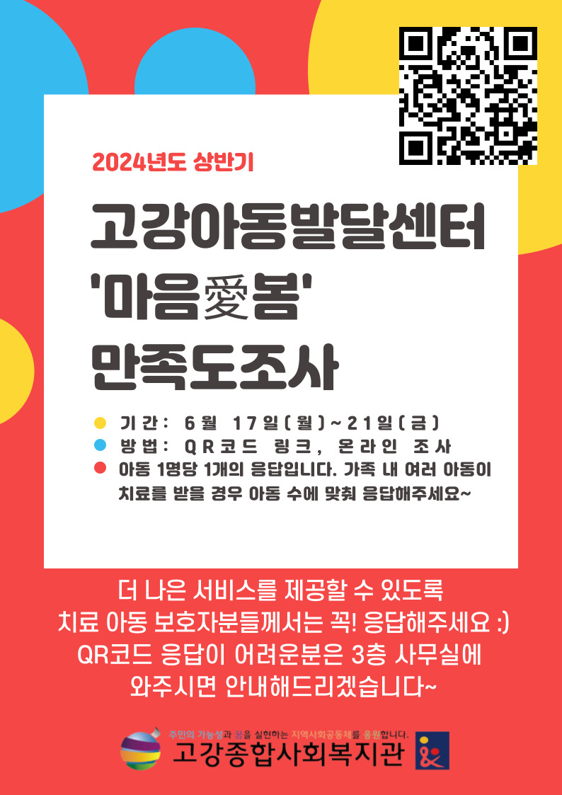 2024년 상반기 고강아동발달센터 이용자 만족도 조사 설문지 링크