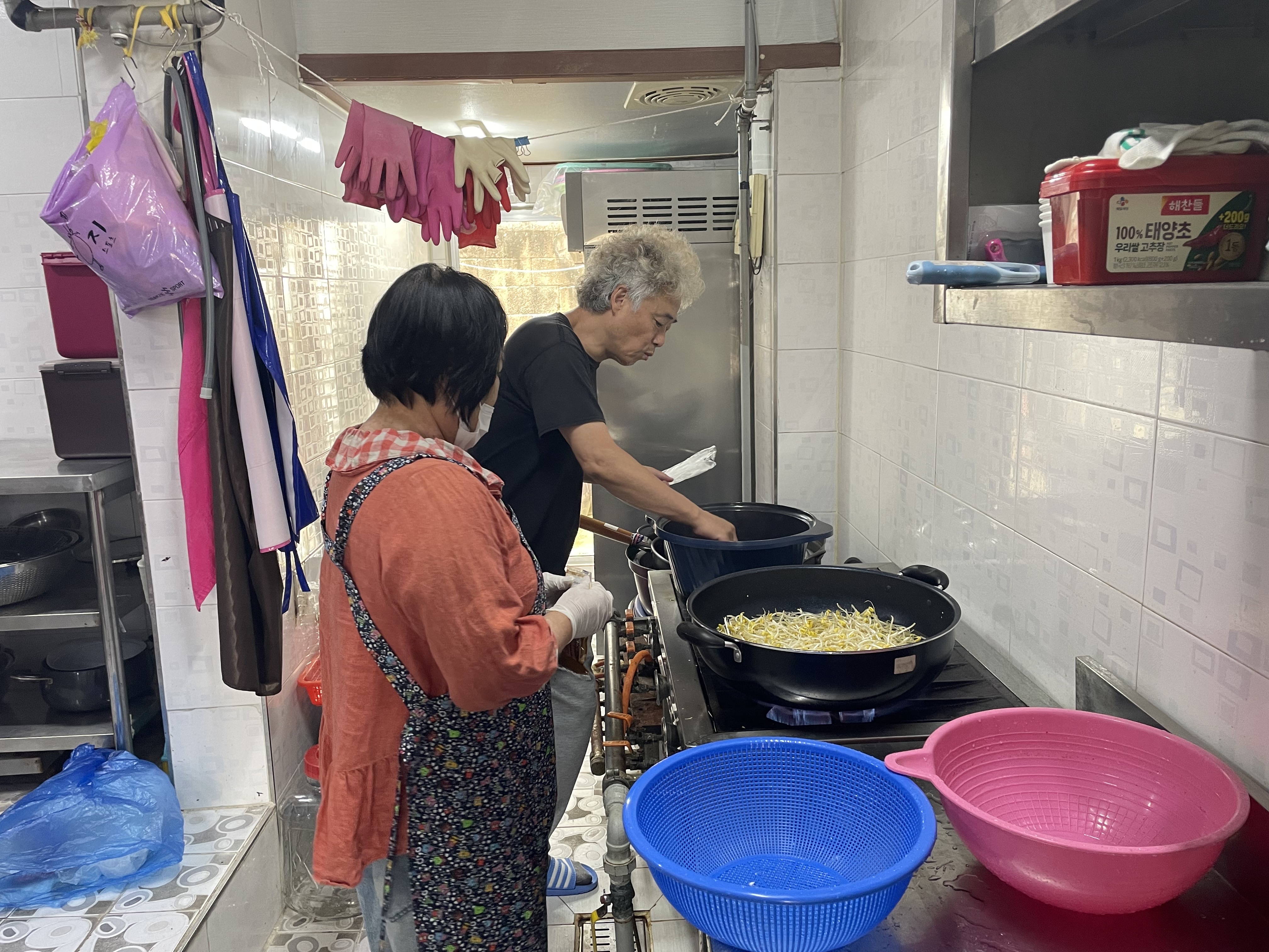 “콩나물 다 익었다. 한번 헹구면 돼”