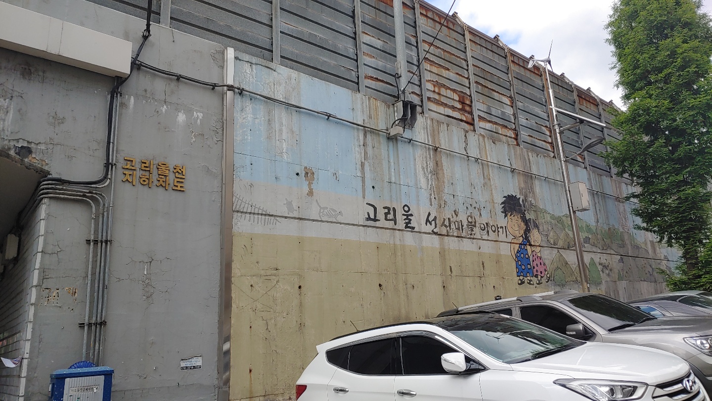 이제는 조금 낡아버린 고리울 선사마을이야기 벽화를 구경하며 쭉 걸어갑니다.