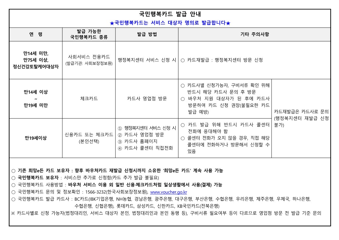 - 신청장소: 주민등록상 거주지 관할 동 행정복지센터