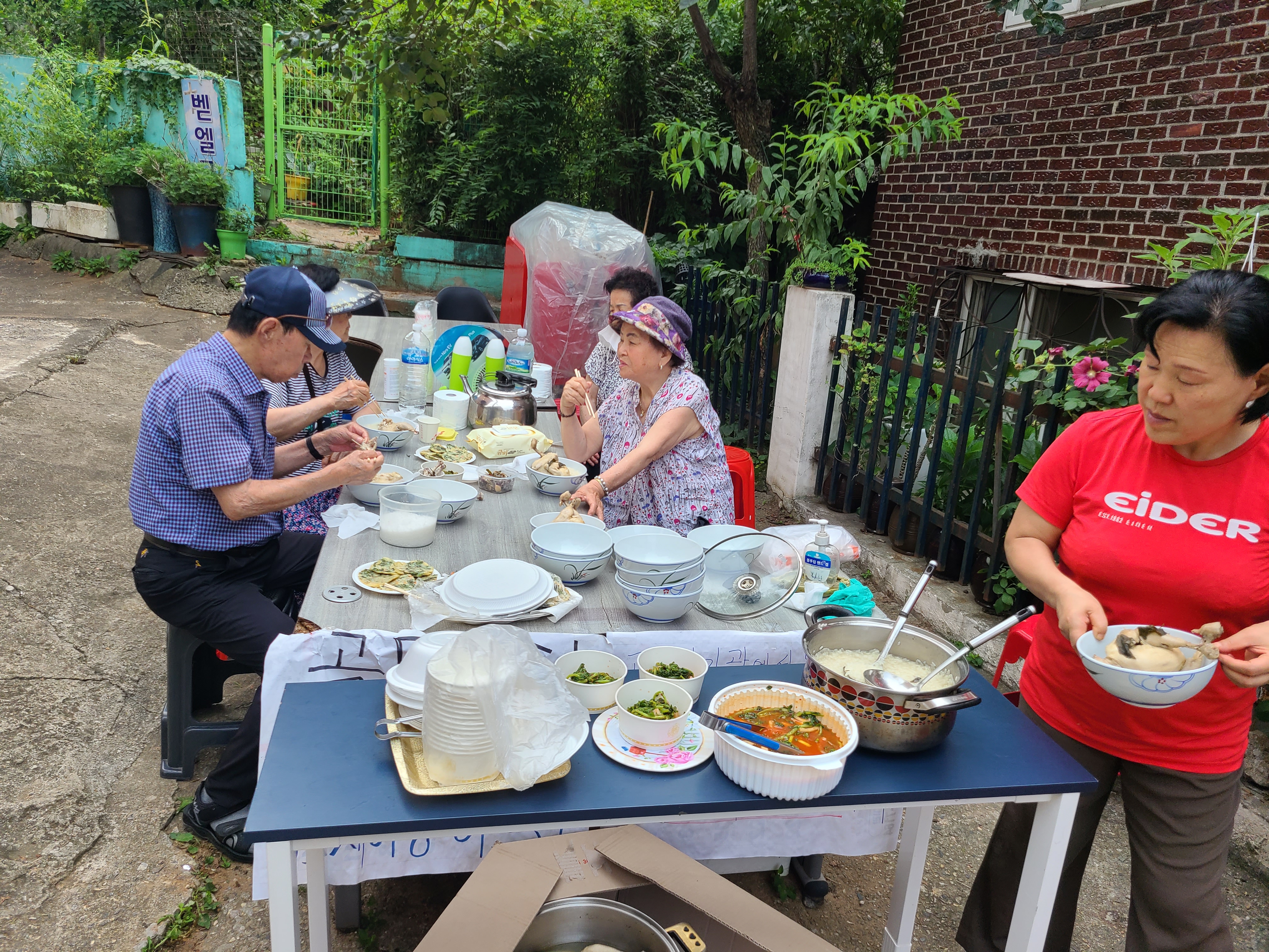 중복이나 말복에 한 번 더 어르신들을 초대하고 싶다고 말씀하시는 우리 통장님.