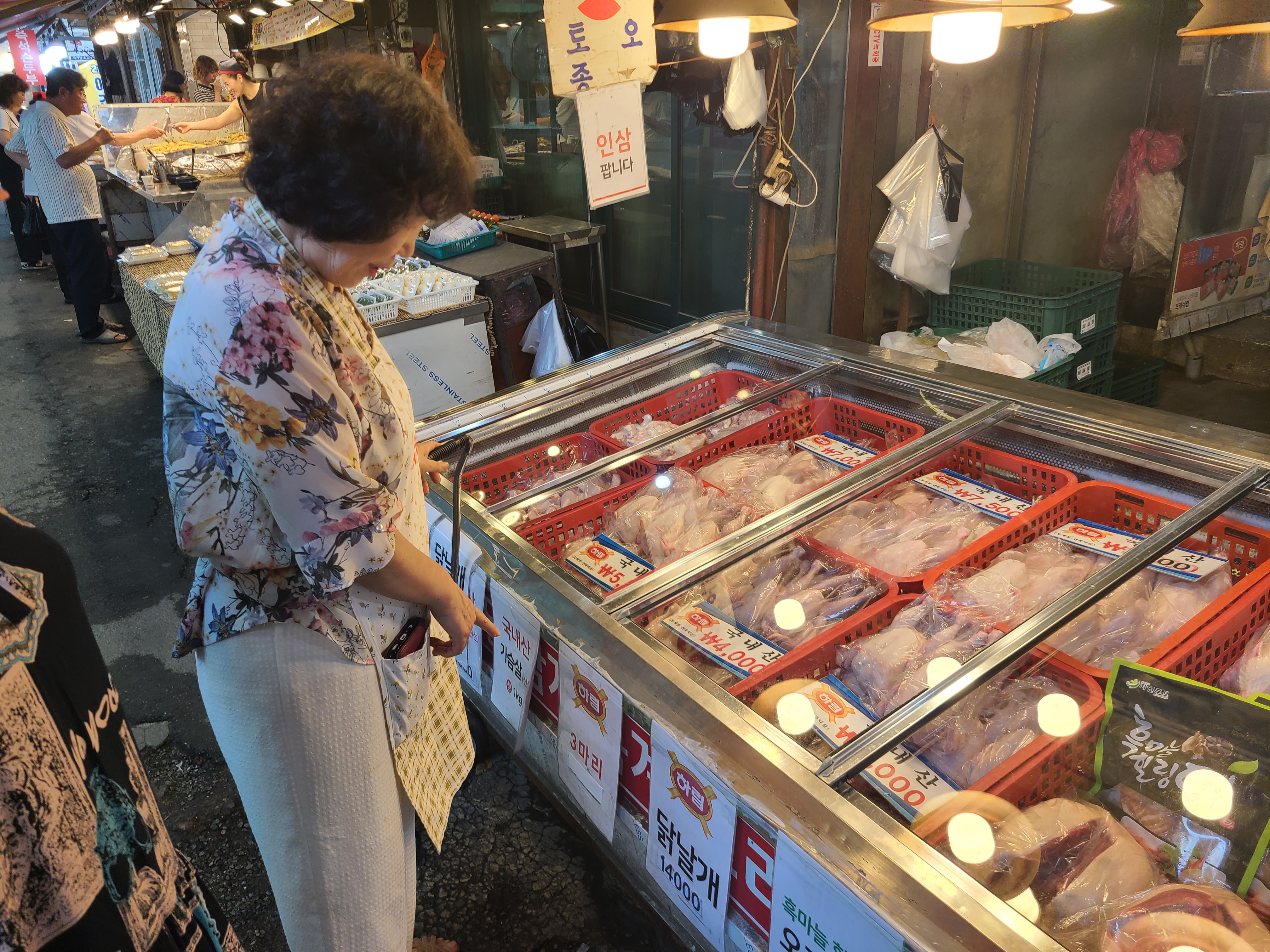 그리고 저와 통장님은 시장에 다녀옵니다.
