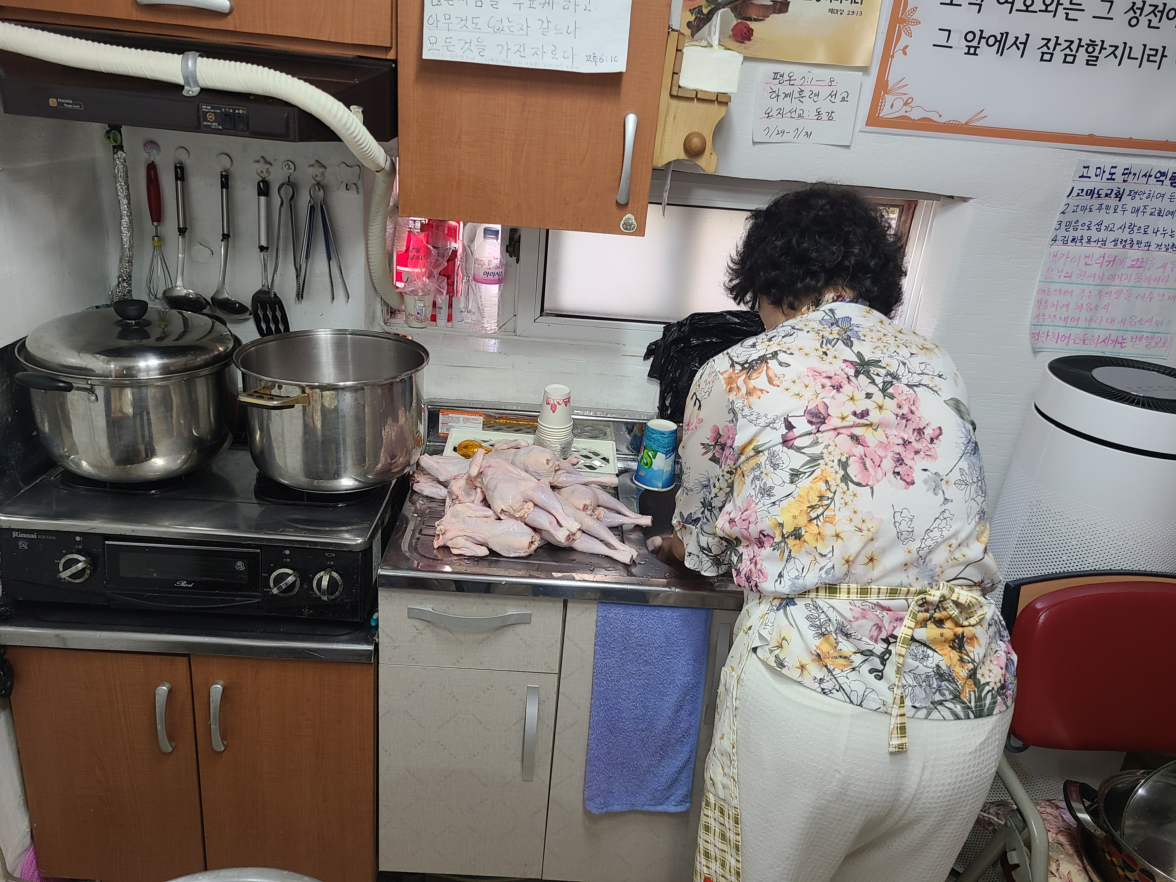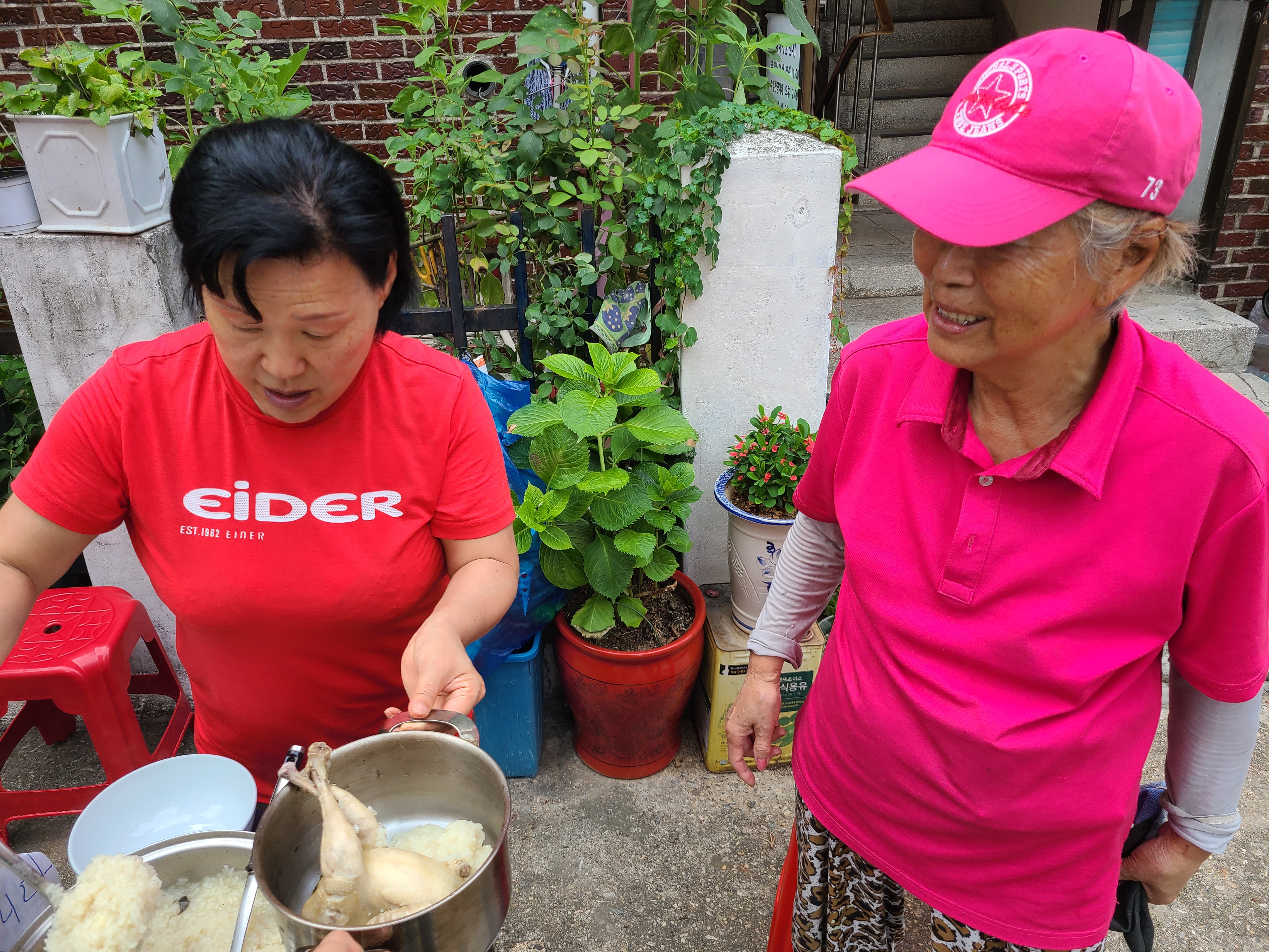 통장님이 준비하신 재료들을 넣고 폭폭 삶으니 어느새 맛좋은 삼계탕이 완성됐습니다.