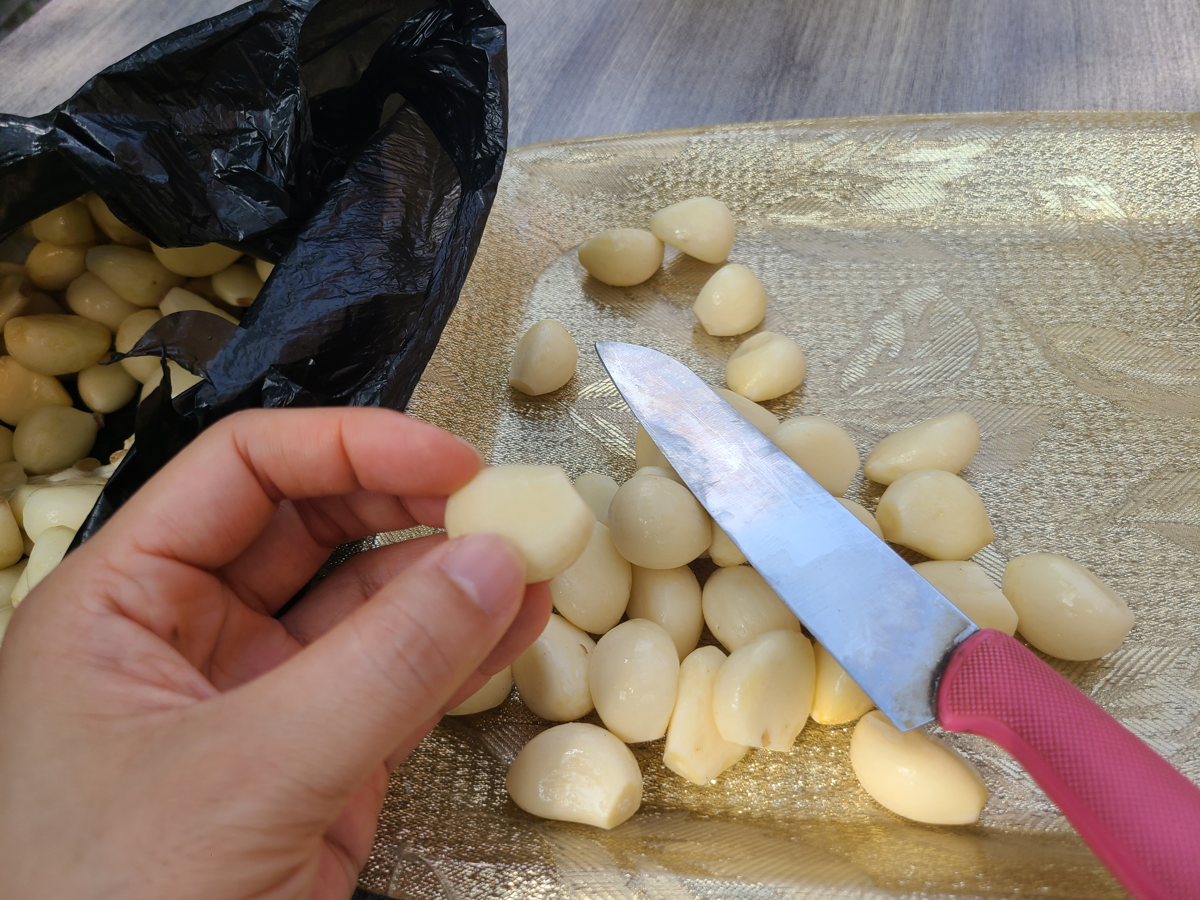 저는 그동안 마늘을 손질합니다.