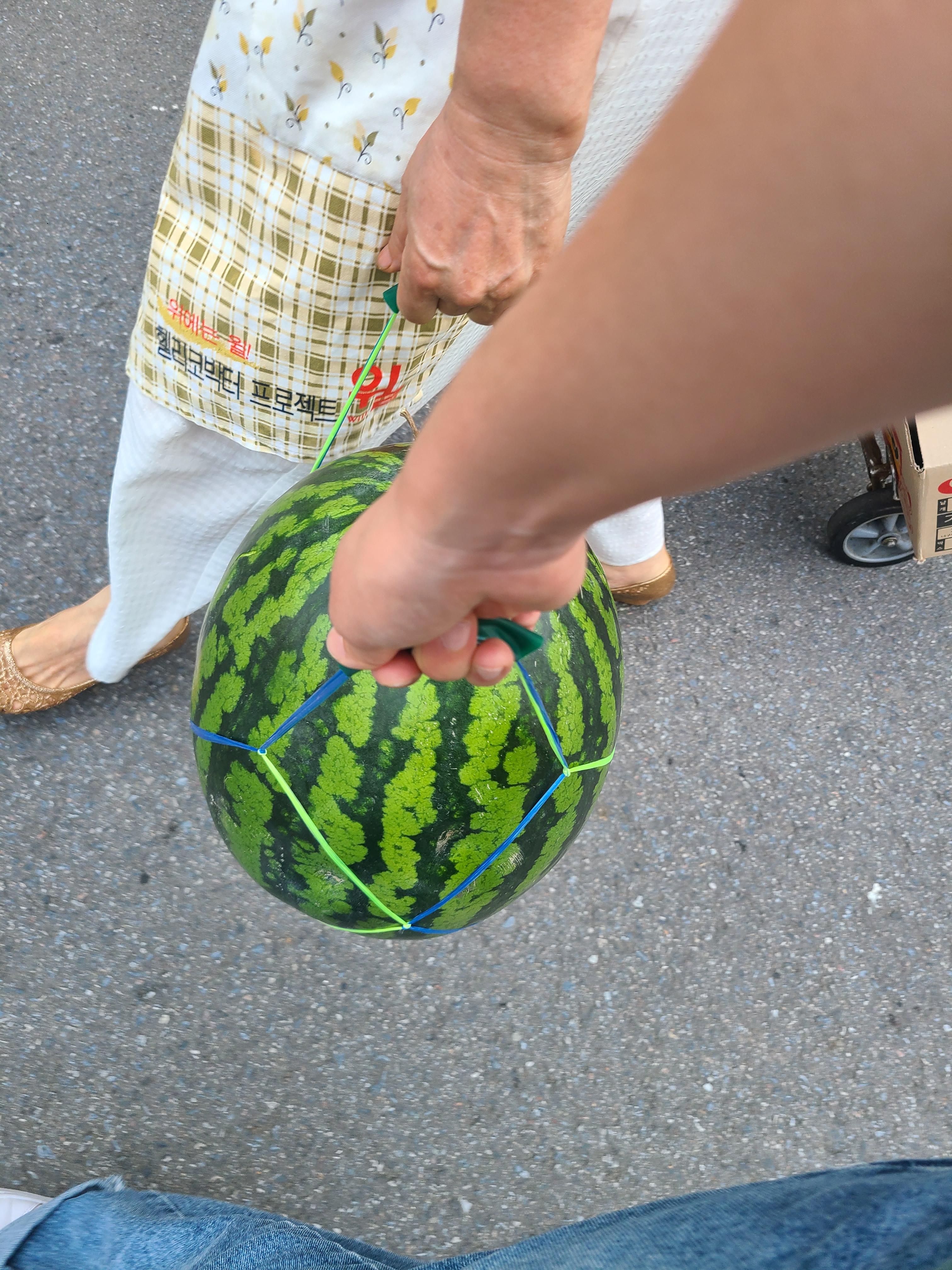 닭을 사서 손질을 하고, 시원하게 드실 수박도 구매합니다.