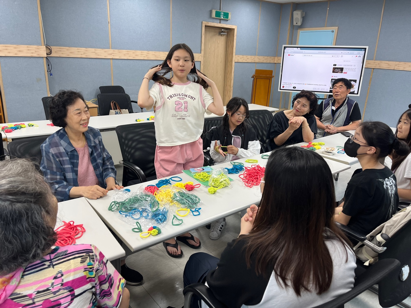 내가 배운 활동들을 아이들에게 알려주는 활동. 무언가를 주고받을 수 있다는 것에 대해 아이들과 어르신들 모두 의미있는 시간을 보냈습니다.