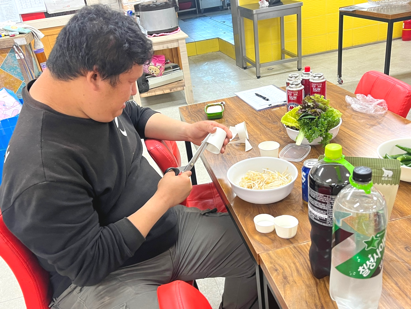 재료 손질, 테이블 세팅, 요리도구 준비, 설거지 등 자신이 할 수 있는 역할을 스스로 찾아 움직입니다.