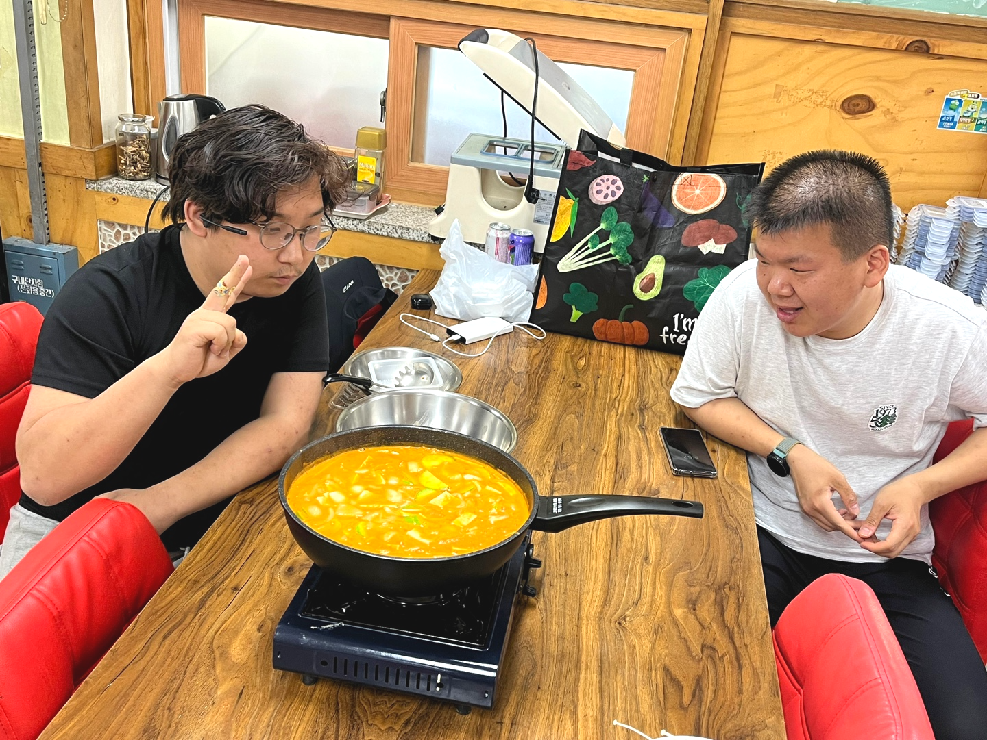 “다 같이 먹으니까 진짜 맛있다 그치?”