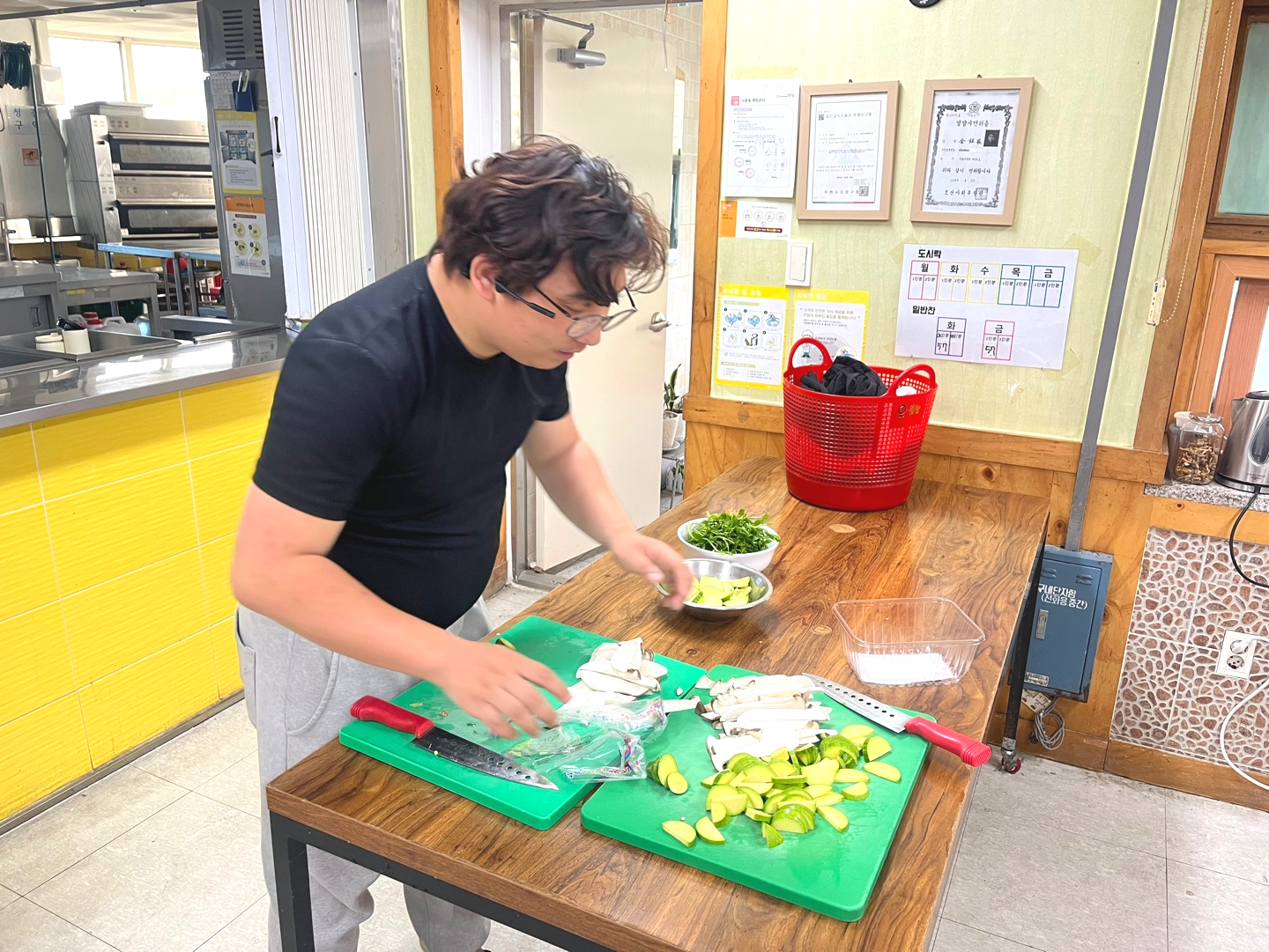 "손은 꼭 깨끗하게 씻어야해. 칼 쓸때 조심하자"