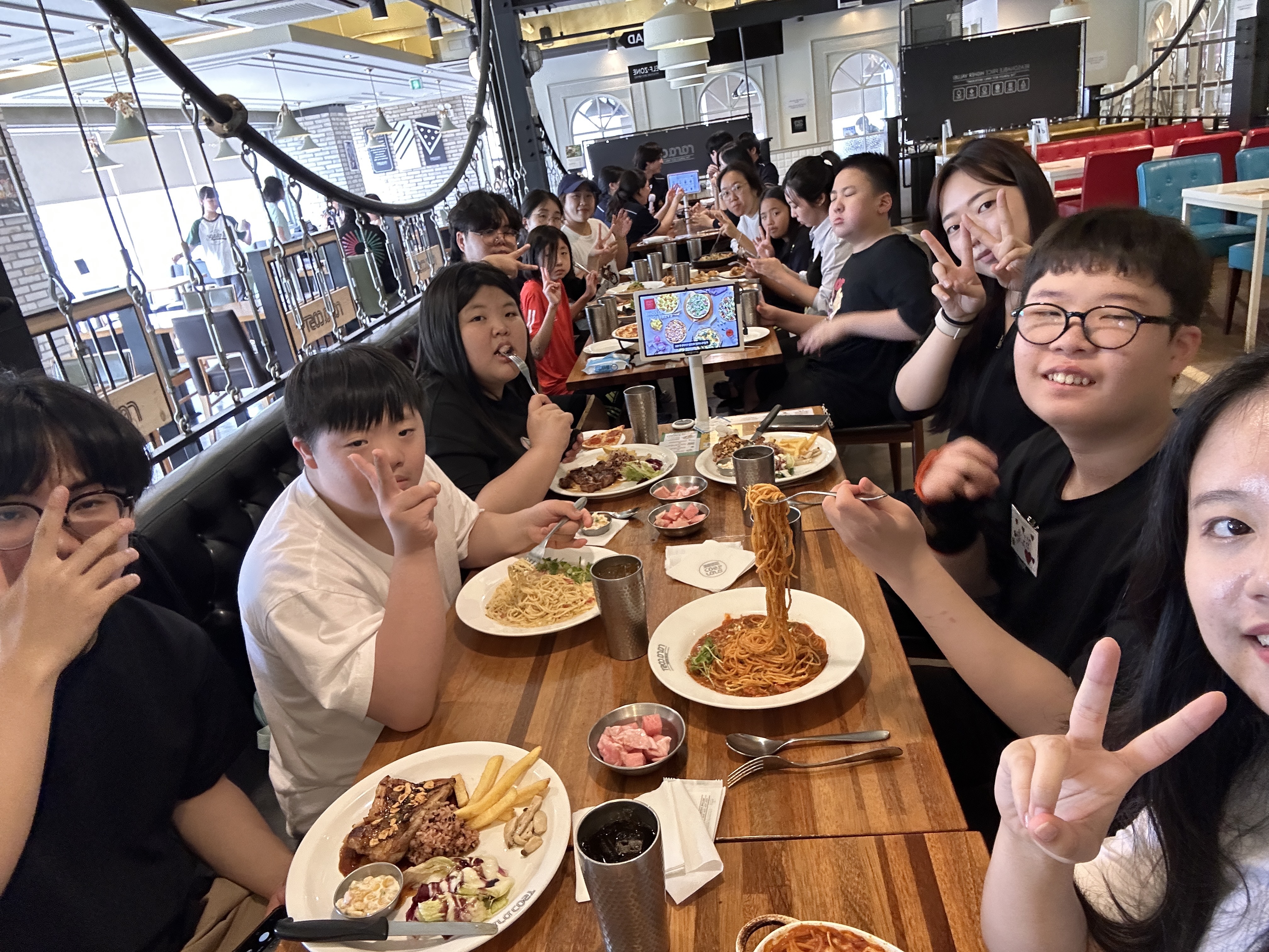 이후, 점심식사를 먹을 장소인 ‘라라코스트’로 이동 및 아동들이 스스로 먹고 싶은 메뉴를 고르는 시간을 가졌고, ‘라라코스트’에서 아동 및 선생님 모두 음식을 맛있게 먹었습니다. 캠프를 마치며 캠프가 재미있냐는 질문에 모두 재미있다고 답을 해주었는데요. 또, 아이들에게 전날 작성한 편지를 전해주며 선생님과 아동 간의 관계를 돈독히 하였습니다.