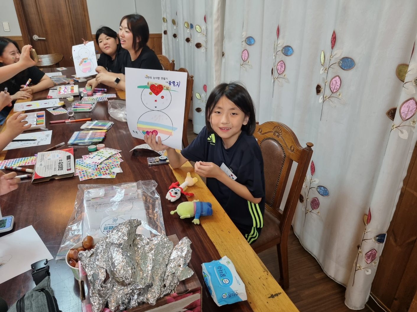 서로 눈사람에 대해 발표하고 “저 눈사람은 저런 의미가 있는 눈사람이구나~”, “우와~ 잘 꾸몄네” 하며 서로 감탄하였습니다. 서로에게 소개해주는 시간을 가지면서 더욱 서로를 알아갔습니다. 음식을 준비하고, 눈사람을 꾸미는 시간을 통해 아동들이 서로를 도우며 서로 친해지는 것을 확인할 수 있었고, 아이들이 잠든 후 평가 회의를 통해 프로그램 진행 및 아동 관련 사항의 피드백을 주고 받았고, 각자 아동의 강점을 적어 편지를 사진과 동봉하여 다음날 전해줄 준비를 하고 하루를 마쳤습니다.