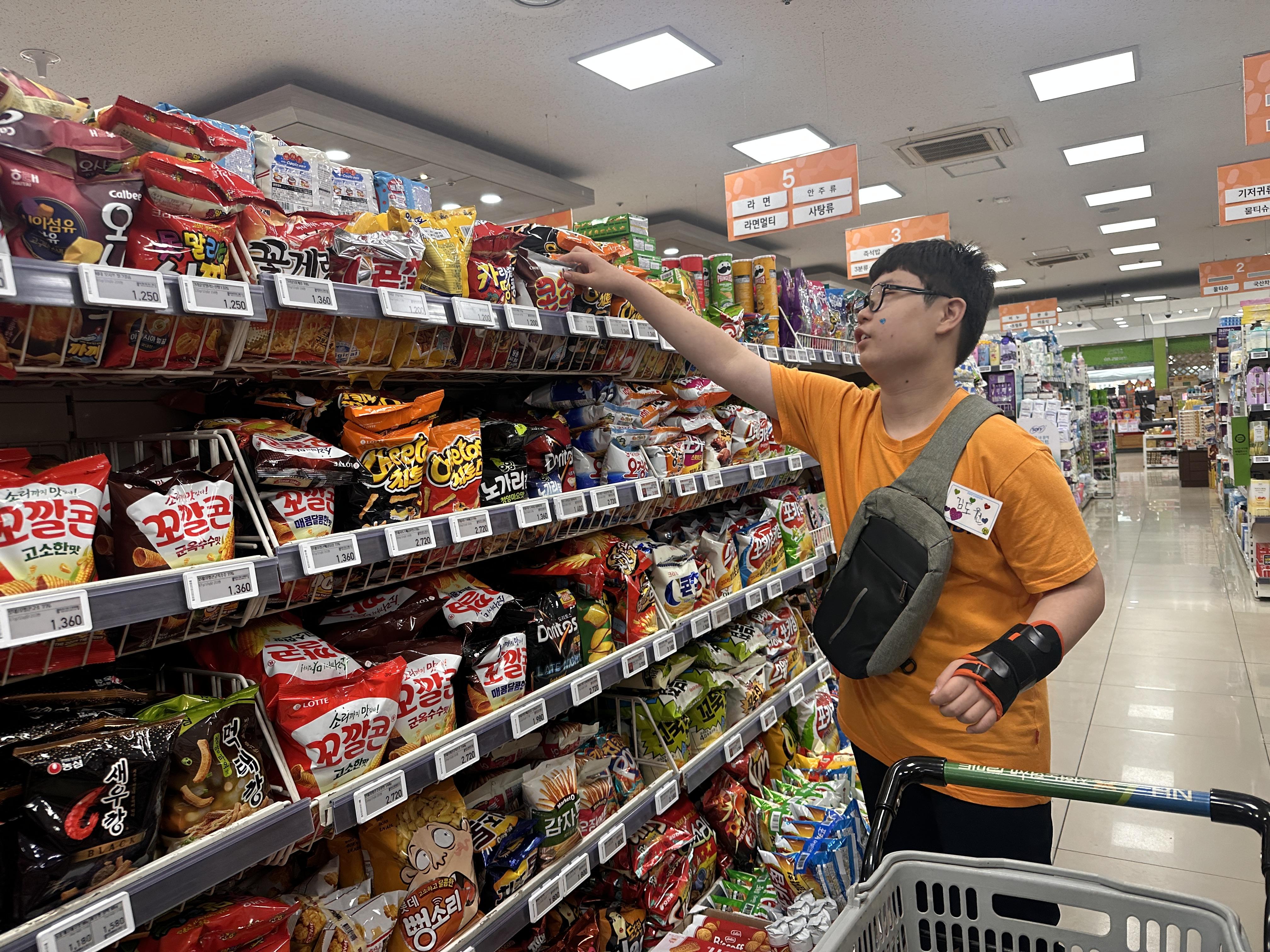 마트에 가서는 3개의 조로 나누어, 밑반찬, 아침식사, 간식을 준비하는 팀으로 나눠 각 주어진 예산 별 장 볼 목록에 있는 것들과 자신이 구매하고 싶은 것들을 함께 구매하며 함께 장을 보았습니다. 장 볼 목록에 있는 것들을 함께 찾아다니고, 특히나 자신들이 원하는 과자들을 살 때는 다들 신나서 카트를 채웠습니다~