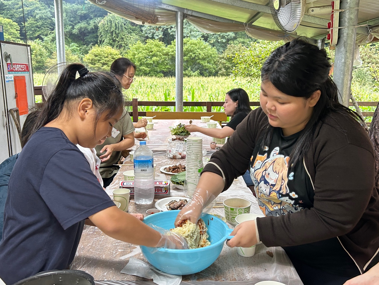 한 아동은 밥을 지으면서 처음 밥을 지어본다며 직접 지은 밥에 뿌듯해하는 시간을 가졌다. 비빔면을 만드는 아동들 또한 직접 면을 삶고, 비비고, 이를 사람들게 나누어하면서 뿌듯해하네요. 다들 직접 구매하고 “이 버섯 내가 골랐는데” 등 자신들이 마트에서 고른 것을 기억하며, 맛있게 저녁 식사를 하였습니다.