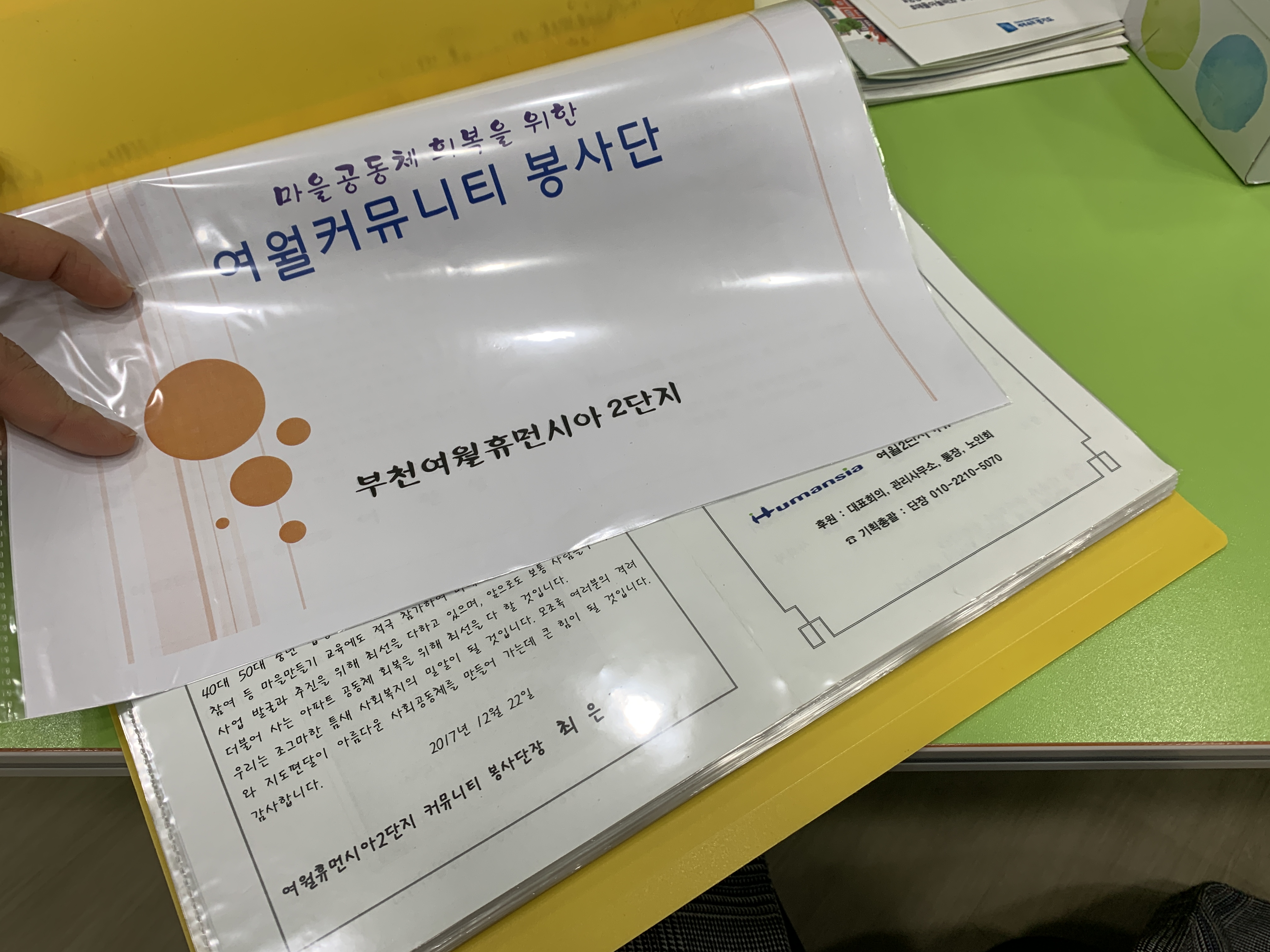이야기 도중 여월2단지 커뮤니티봉사단과
