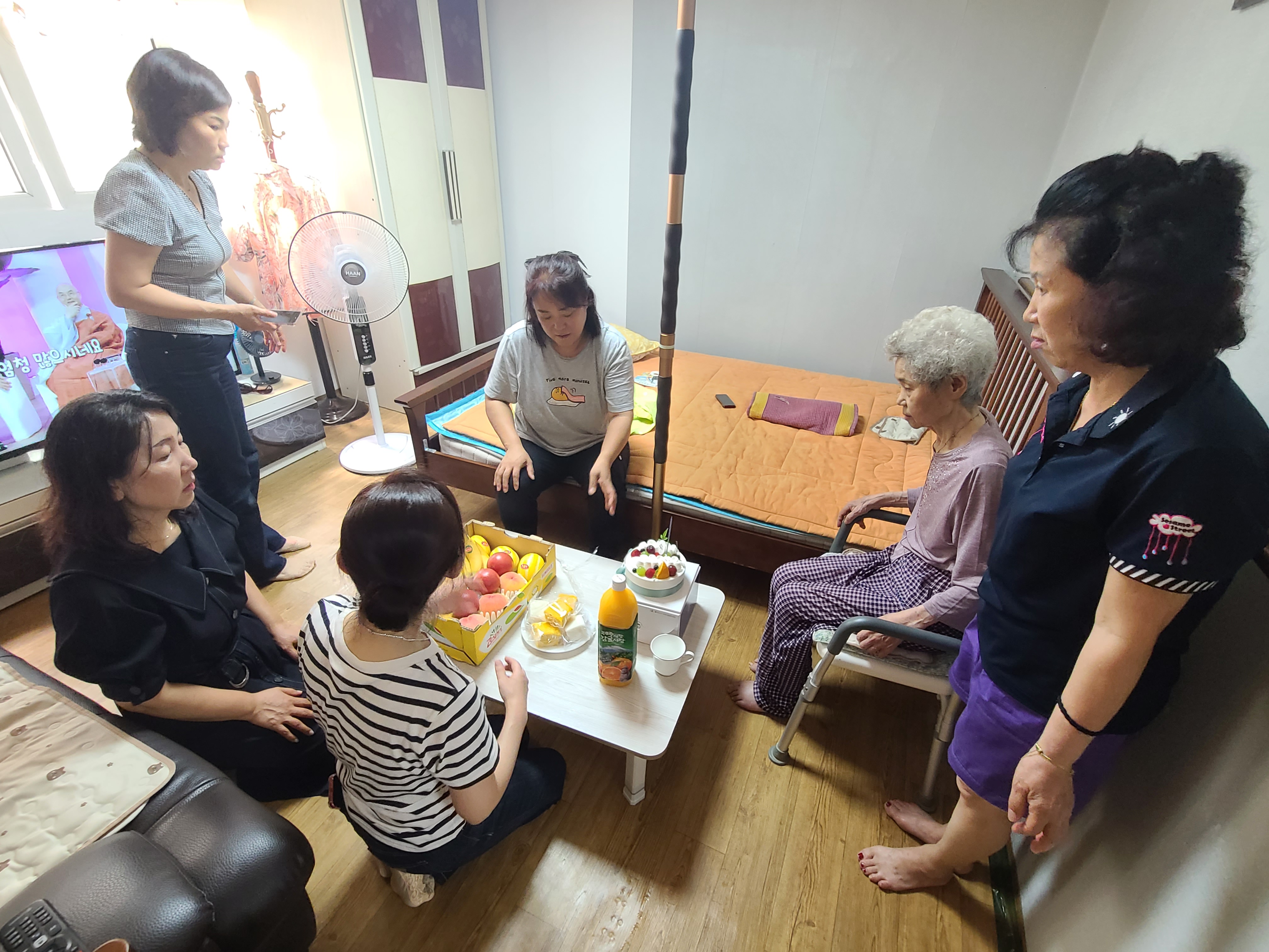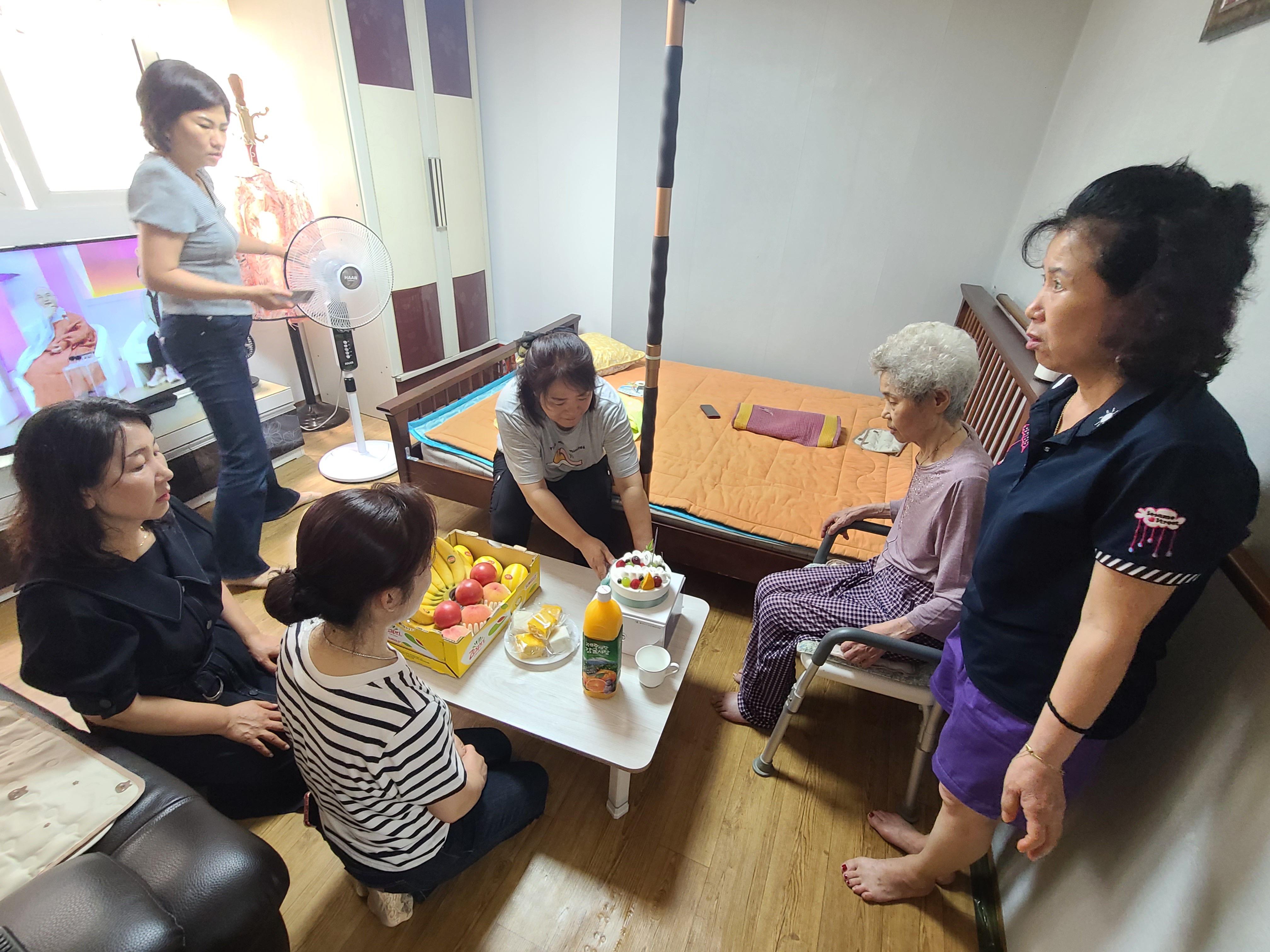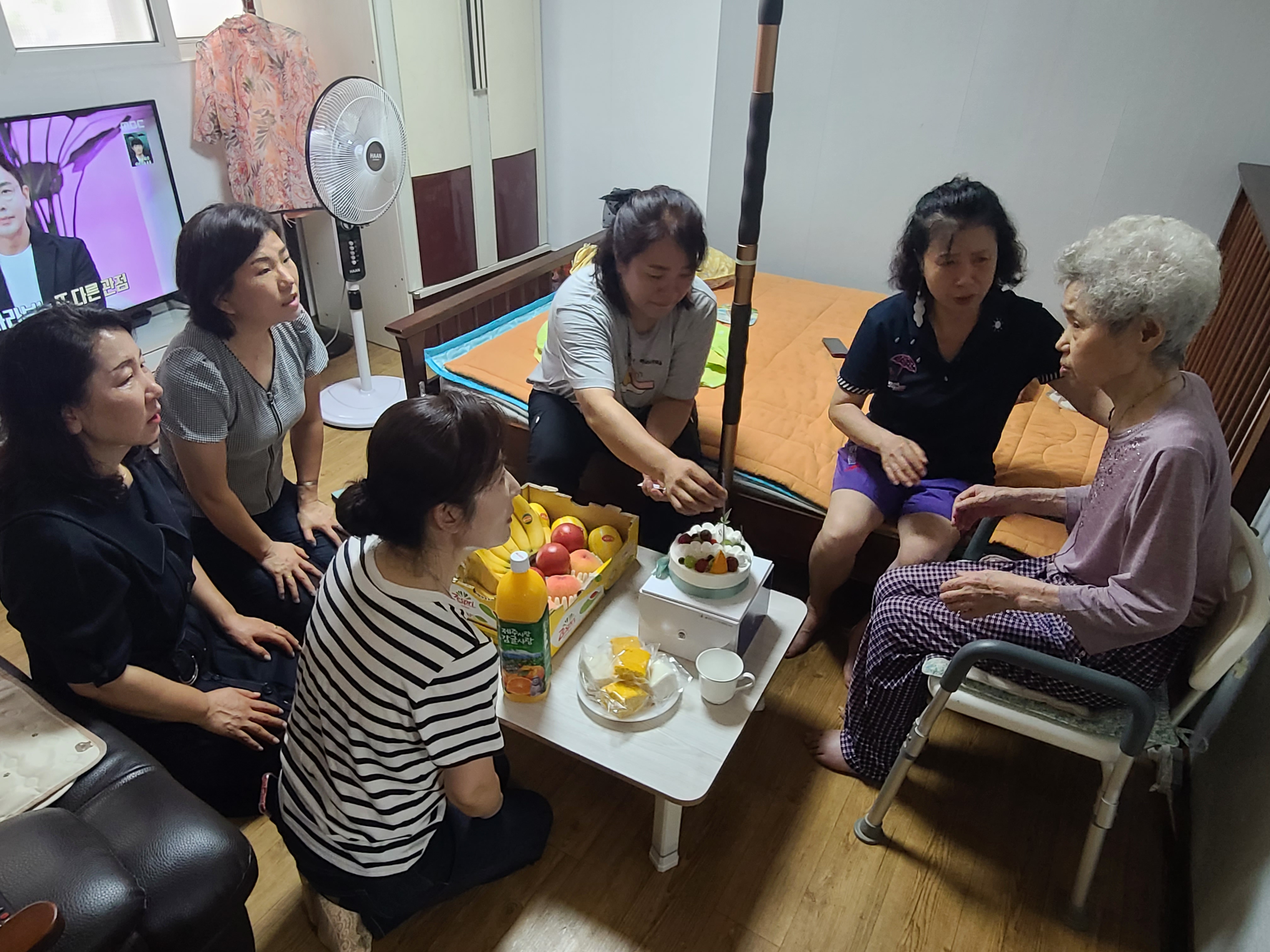 케이크와 과일을 준비해서 어르신댁으로 방문했습니다.