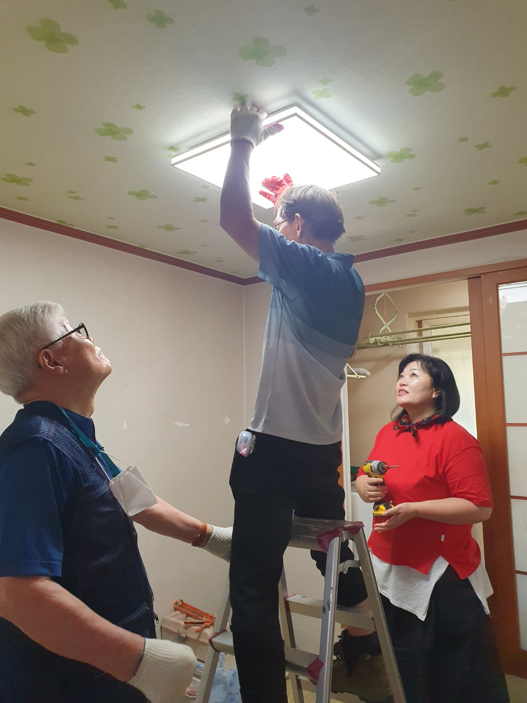 허광명님이 이사한다는 소식에, 고강동 도시재생에서 도배를 배우는 봉사자 선생님들께서 이사할 집의 도배와 전등, 수전 교체까지 해주셨답니다.