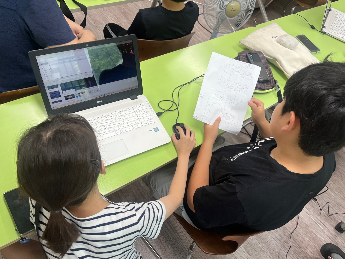 아이들이 지난시간 직접 찍은 사진으로, VR컨텐츠를 만들기위해 본격적으로 편집에 들어갔습니다.