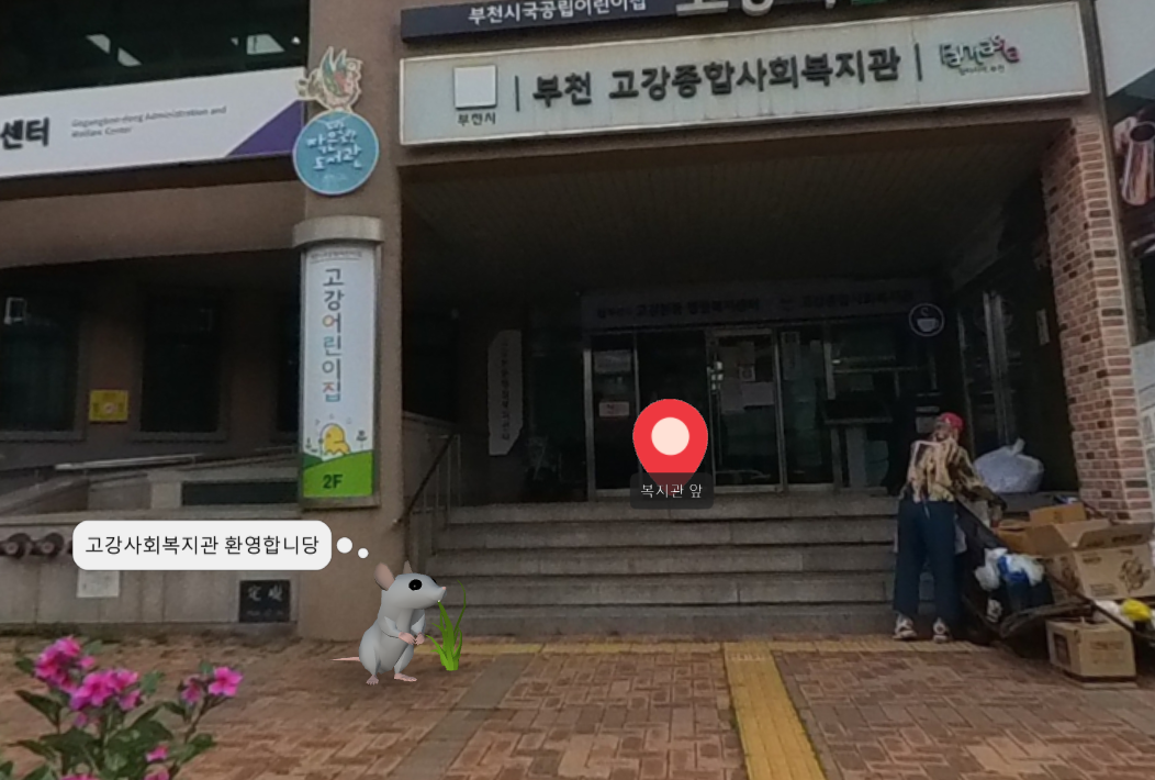 “입구에 사람을 넣는게 어때? 어서오세요~복지관입니다. 이렇게”