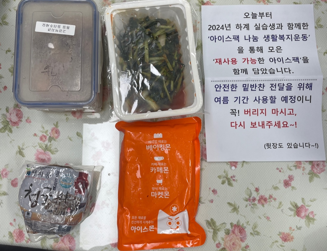 무더위가 시작되기 전 아이스팩을 모으기 위한 방법을 고민하던 중 이번 하계 사회복지 현장 실습을 고리울1팀과 수주팀이 맡게 되어 6명의 실습생과 함께 7월 17일부터 24일까지 아이스팩 나눔 생활복지운동을 기획하고, 진행할 수 있었습니다.