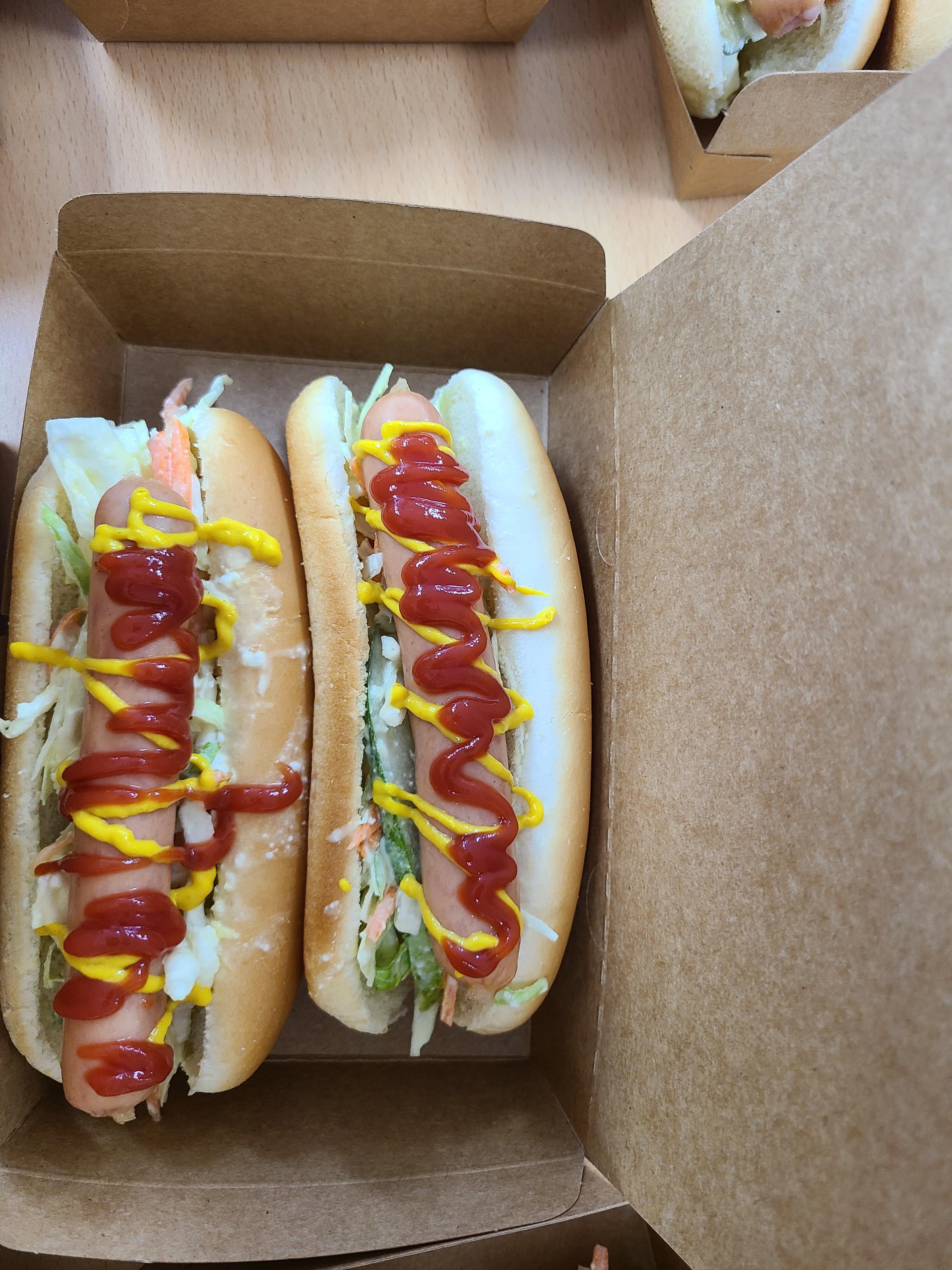 미리 만들어 둔 소스와 채소를 섞어 빵 속에 넣고 소시지를 올리면!