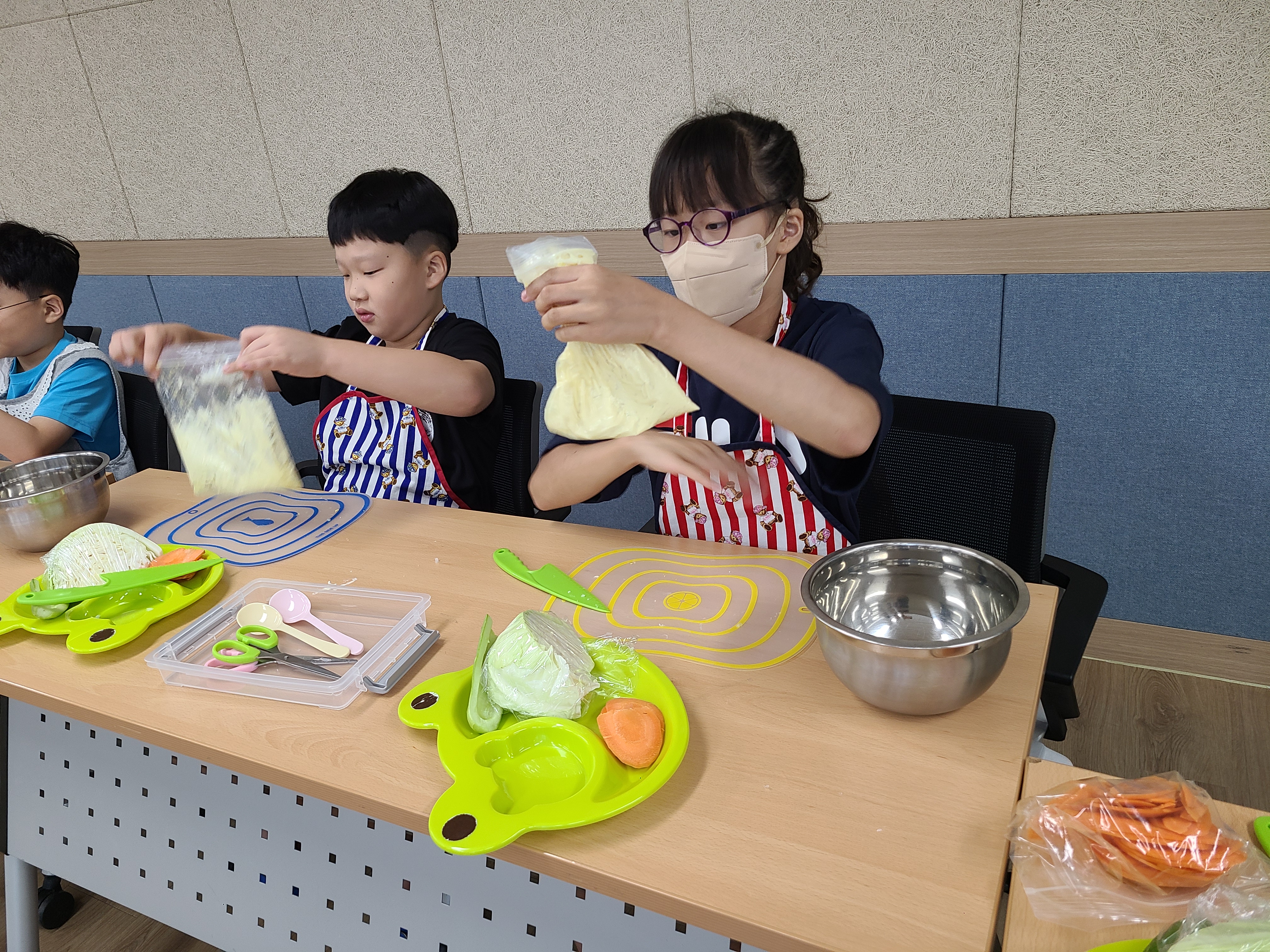 저학년 아이들은 누나, 선생님의 도움도 필요합니다.