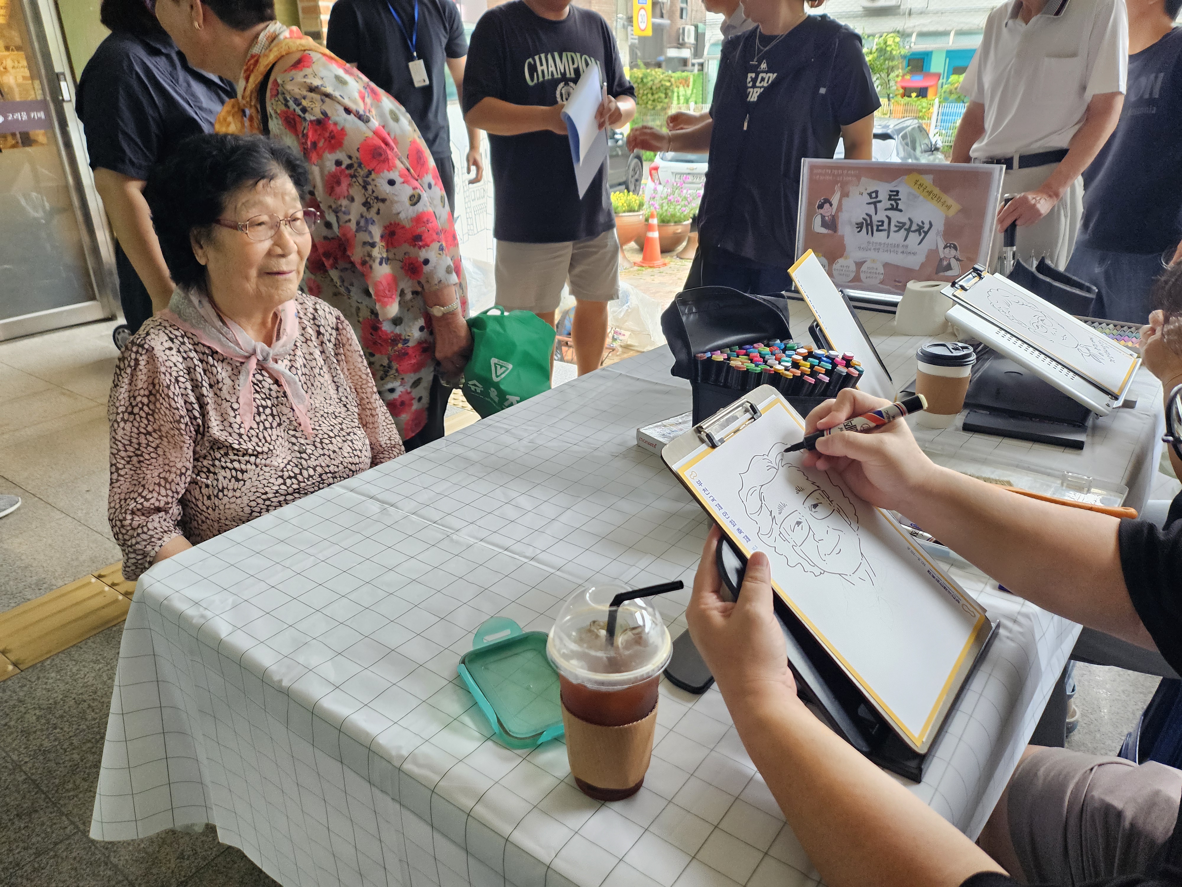 이 날 캐리커처를 그려주신 전문 작가님들 역시 주민들의 사연을 꼼꼼하게 들어주시고, 그에 맞는 그림을 정성껏 그려주셨어요. 각 캐리커처가 단순한 그림을 넘어서, 주민 개개인의 이야기를 담아낸 소중한 작품이 되었습니다. 주민들께서도 작가님들의 세심한 작업에 감동하셨다는 후기가 많았습니다.