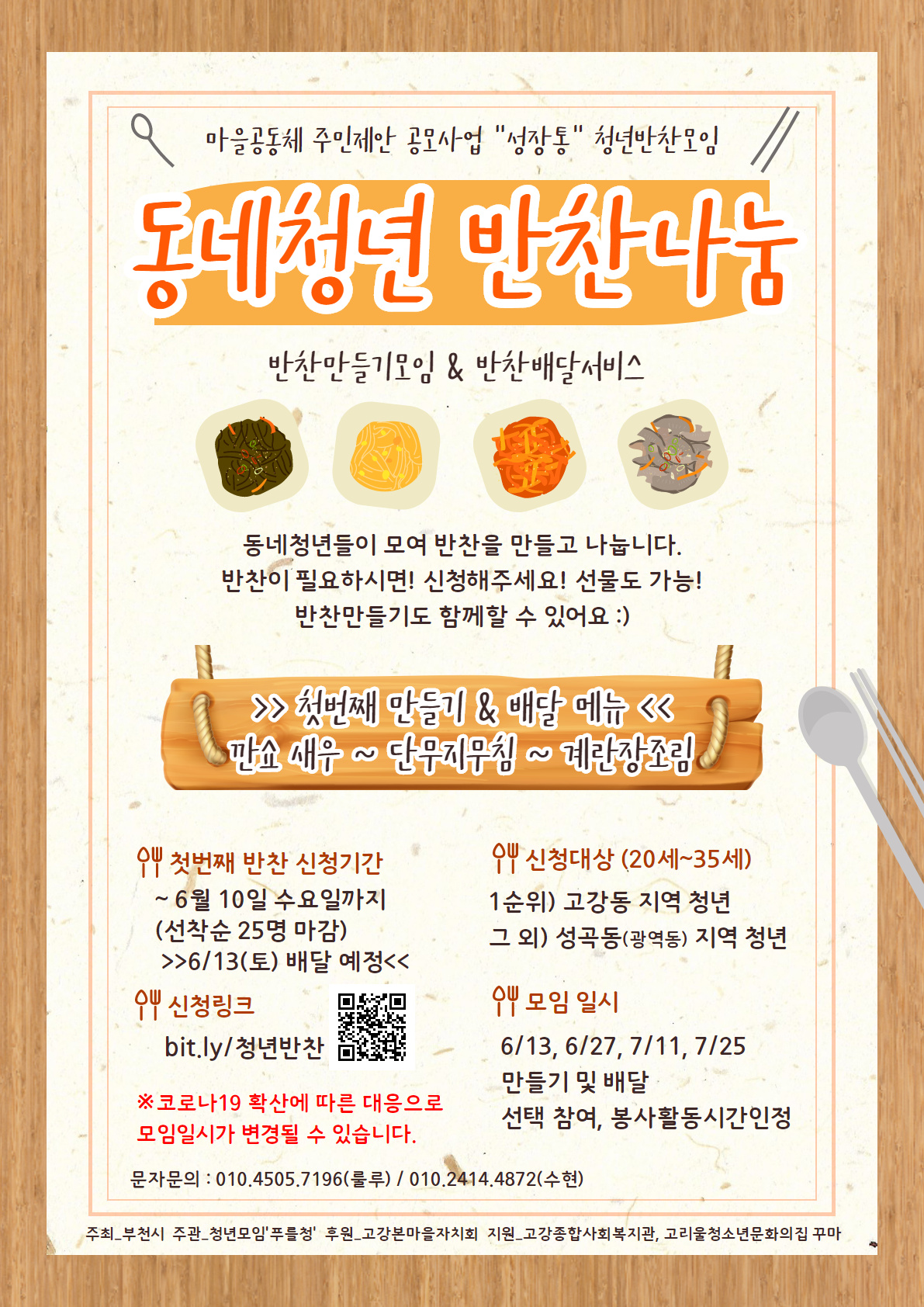 고강동에서 삼삼오오 청년들이 모여 <동네청년 반찬나눔 모임>을 시작했습니다.