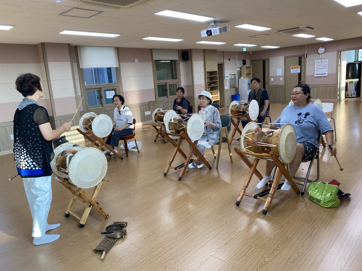 새로운 장단을 배우기 앞서 지난 장구수업에서 함께 쳤던 장단들을 복습하였습니다.