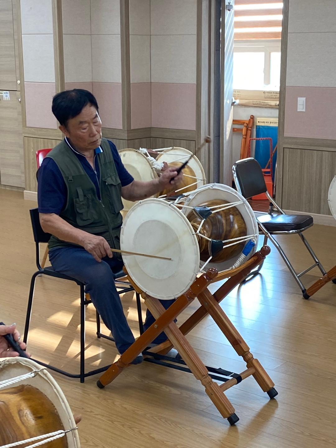 다같이 장단을 치기도하고 두명씩 짝을 지어 장구를 쳤습니다.