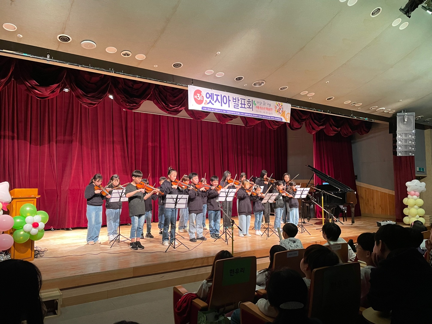 발표회 당일, 총 12팀의 179명 아동들이 준비한 다양한 공연이 차례로 펼쳐졌습니다. 피아노와 바이올린 연주를 비롯해 난타와 수화, 오카리나 연주, 댄스, 스포츠스태킹 등 아동들이 열심히 연습한 실력을 마음껏 뽐내며 관객들의 큰 박수를 받았답니다. 공연 중간마다 이어진 마술 공연과 행운권 추첨은 또 다른 재미를 선사하며 관객들의 큰 호응을 이끌어냈죠.