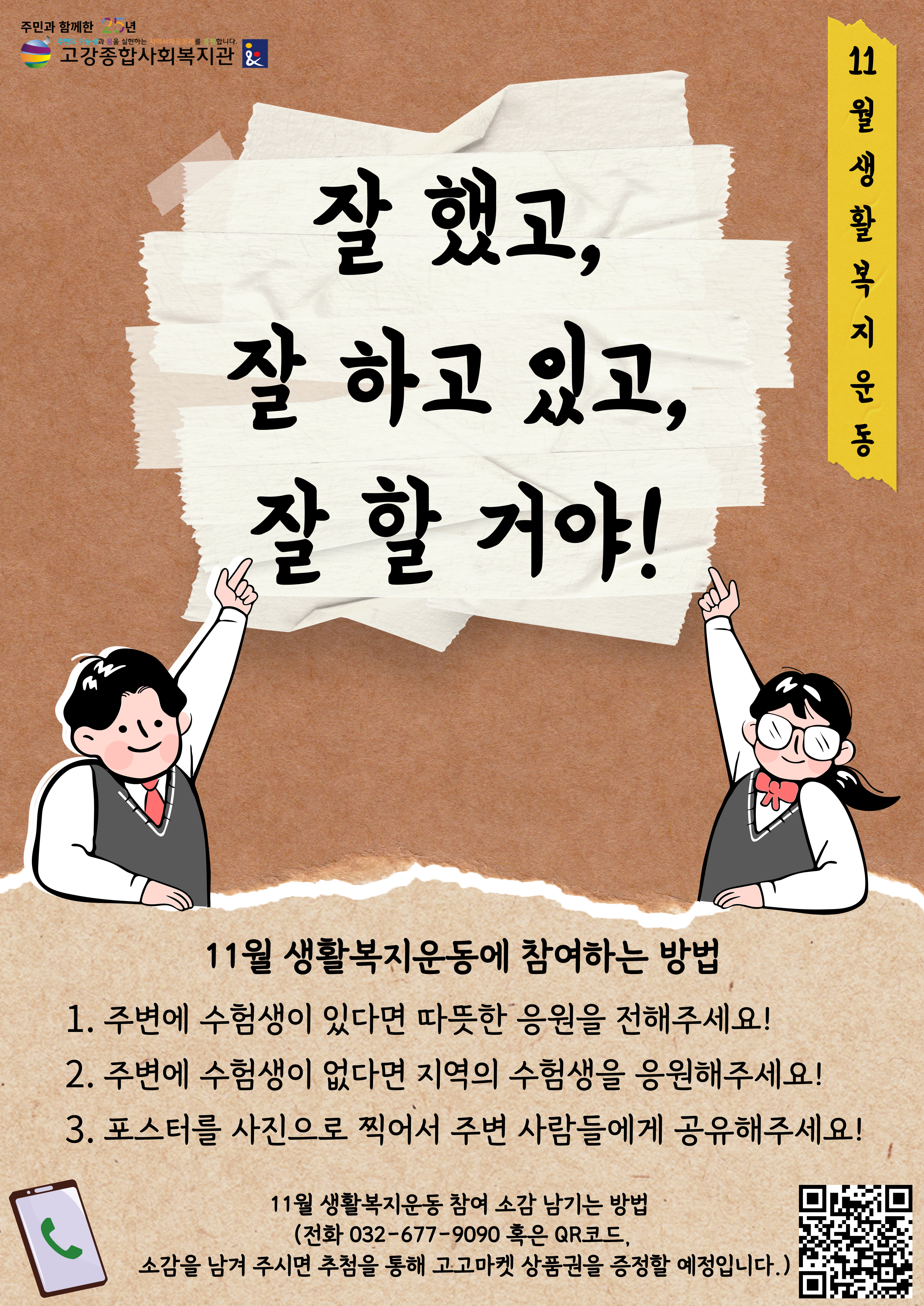고강종합사회복지관은 11월 한 달 동안 수험생을 응원하는 메시지를 전하는 생활복지운동을 펼칩니다.