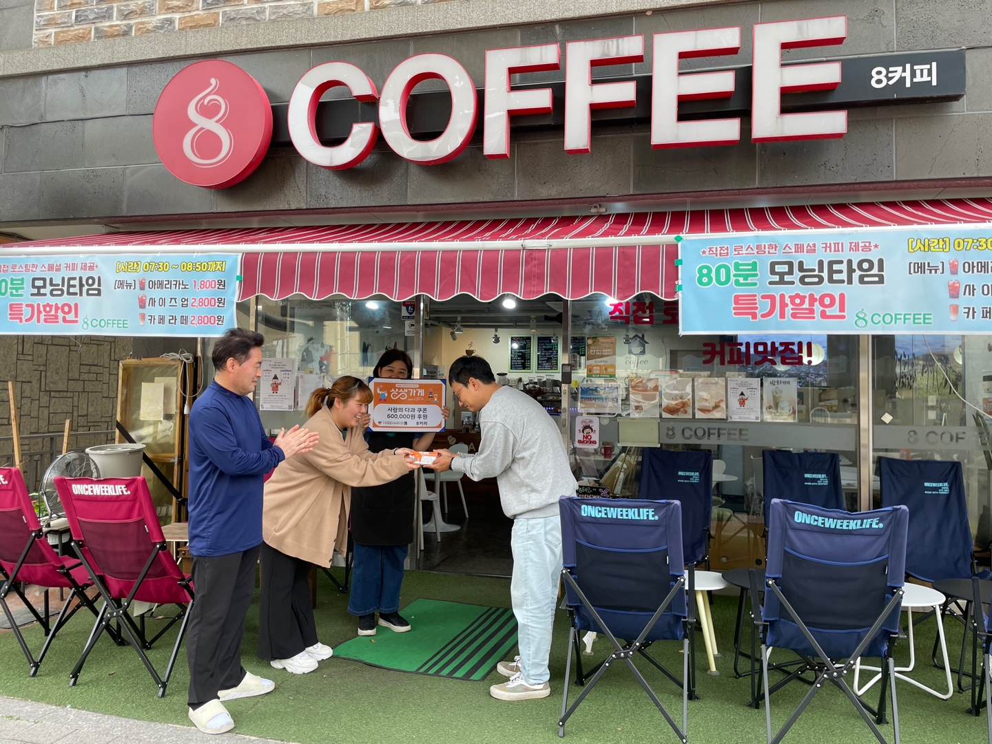 8커피(장이슬)는 고강종합사회복지관과 고강1동 행정복지센터를 통해 지역 주민들에게 커피를 대접하며 나눔의 마음을 전하고 있습니다.