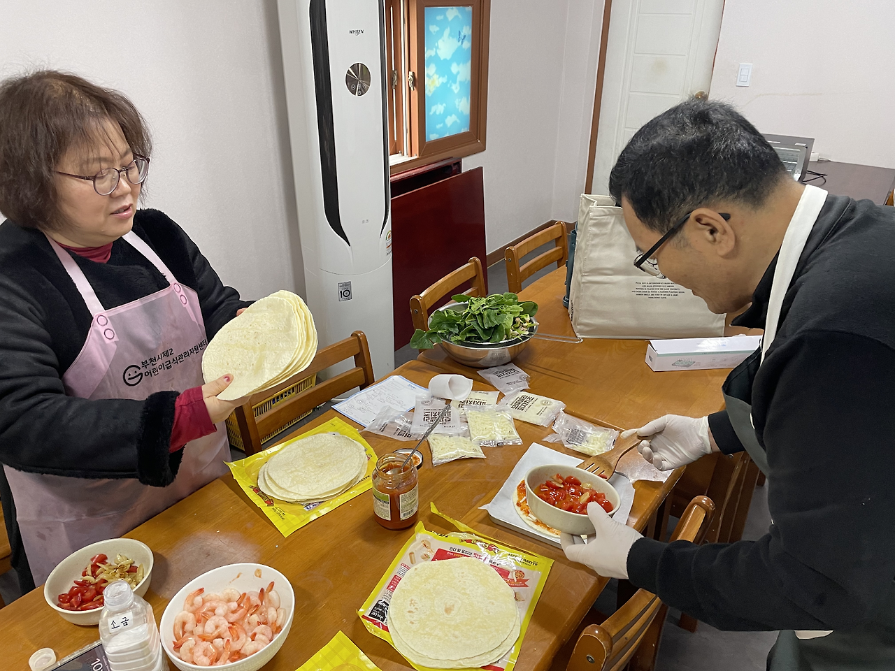 평소에 익숙한 요리가 아닌 새로운 양식 메뉴로 다양한 음식을 만들어 보니 모두들 만드는 재미에 푹 빠지셨습니다.