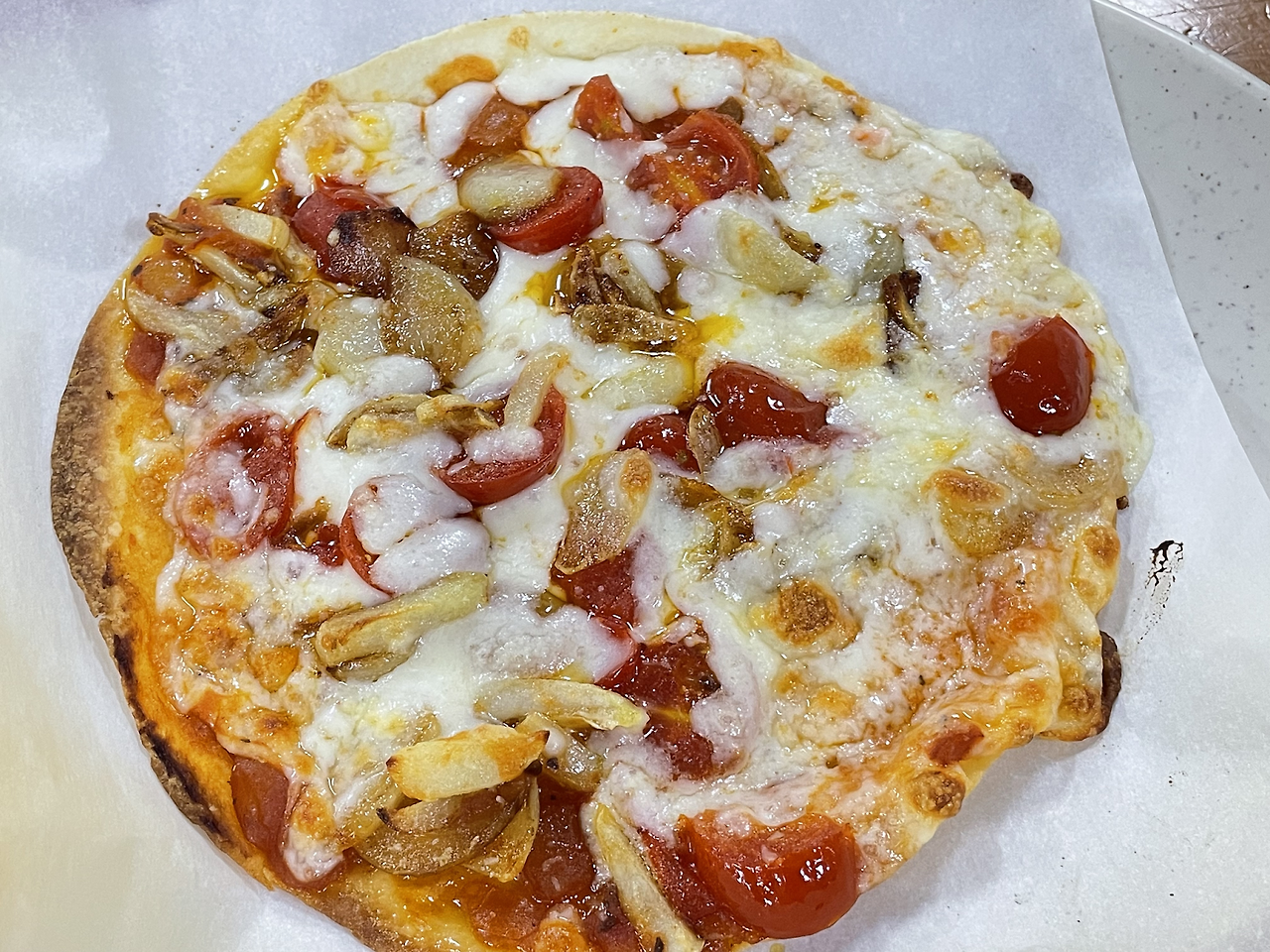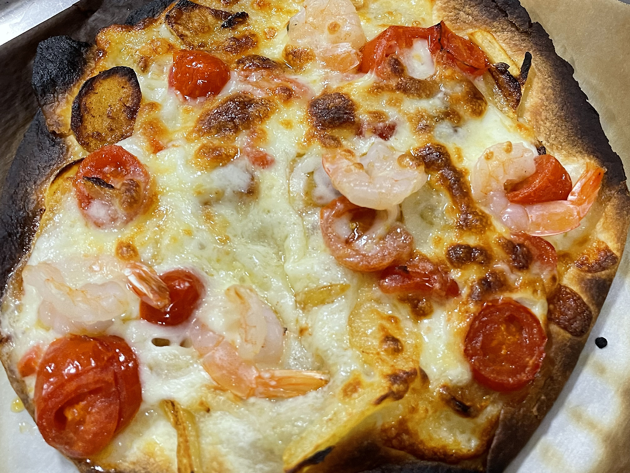 실험용으로 구운 피자는 약간(?) 그을렸지만 한입씩 맛을 보았습니다.