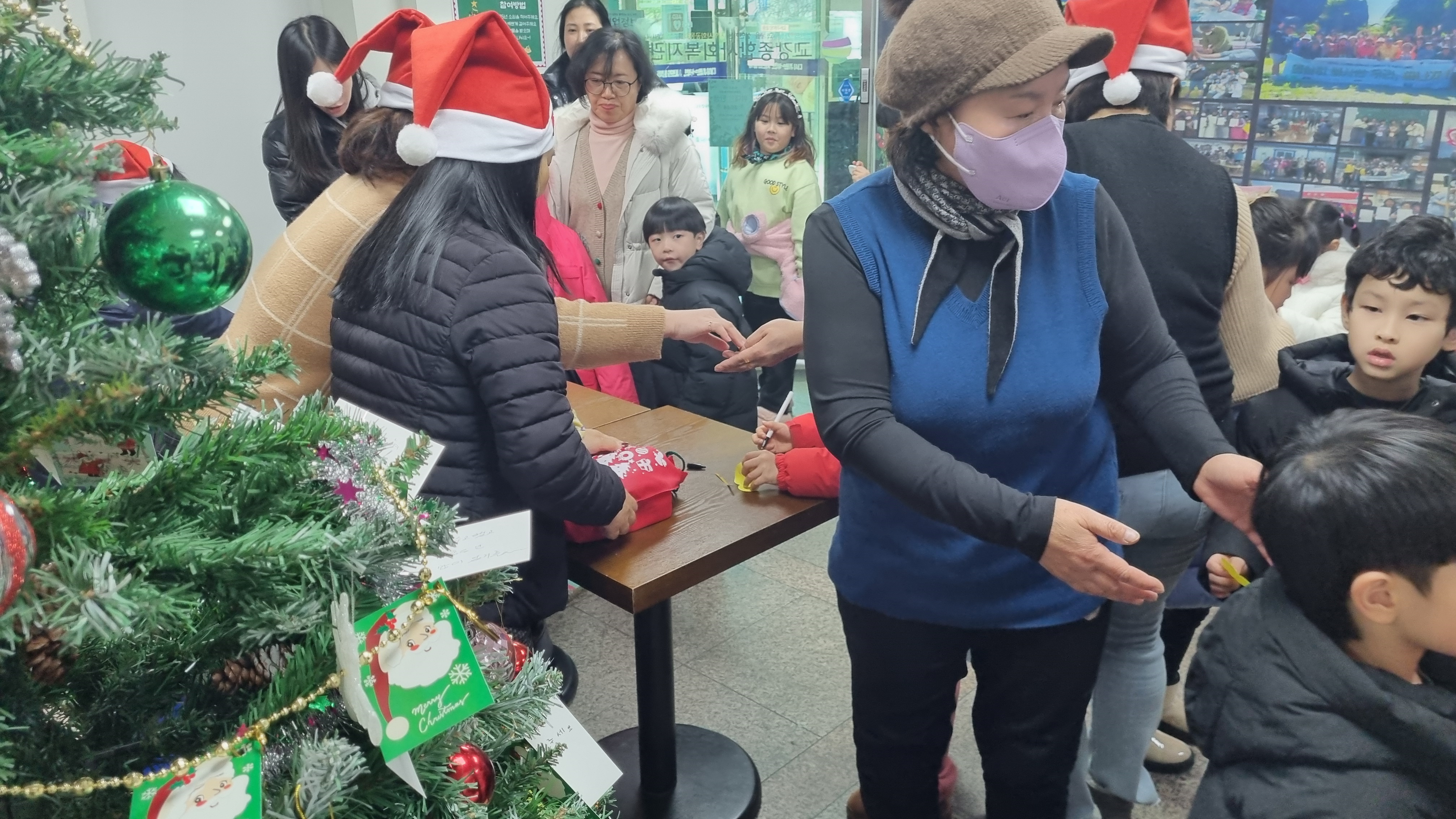 소원을 적어서 나무에 걸면 산타가 준비한 선물을 나눠줍니다.