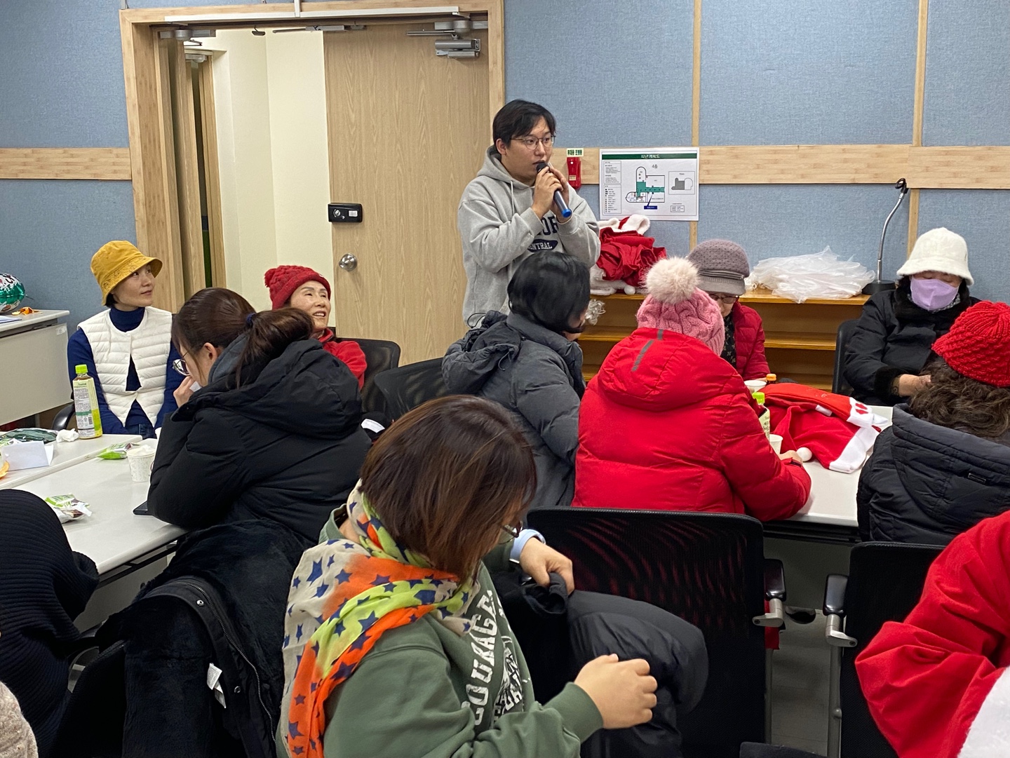 다같이 모여서 산타 옷을 입고 가정으로 찾아갈 준비를 합니다.