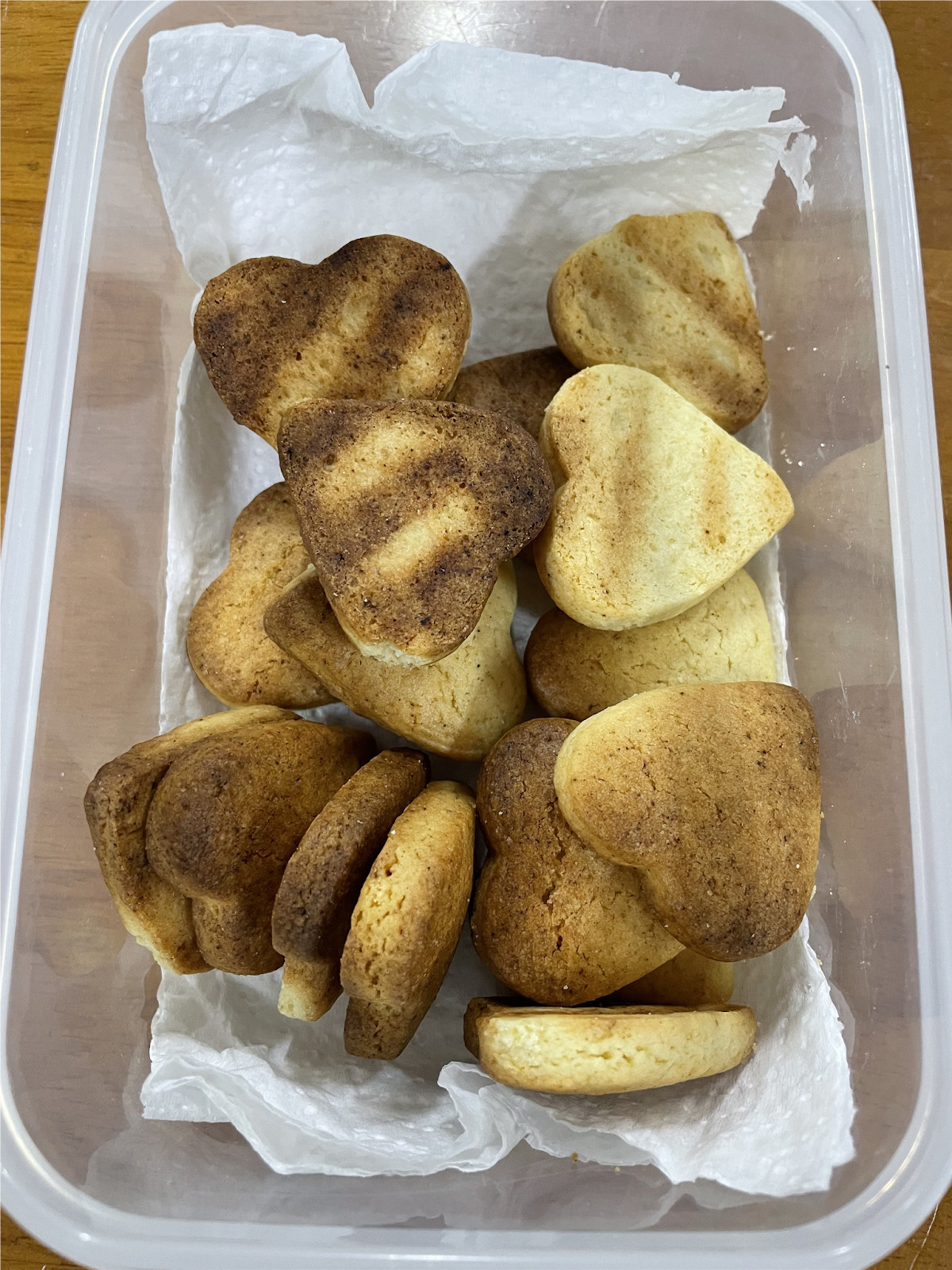 “이번에 처음 쿠키를 만들어 봤는데 처음에는 온도 조절을 실패해서 새까맣게 탔어요… 그래서 새로 구워왔어요.”