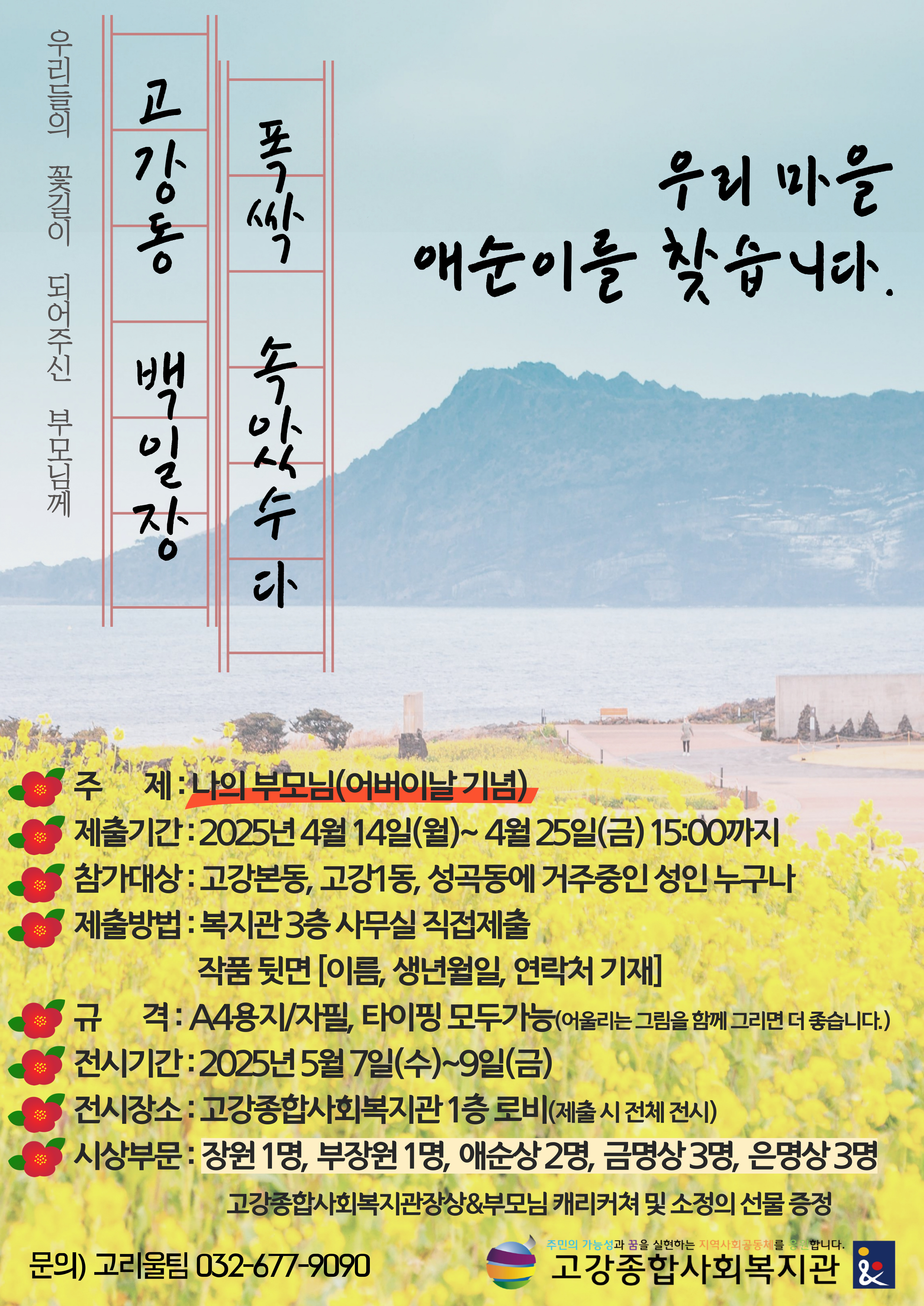 이번 어버이날을 기념하여 고강동 백일장을 시작합니다.