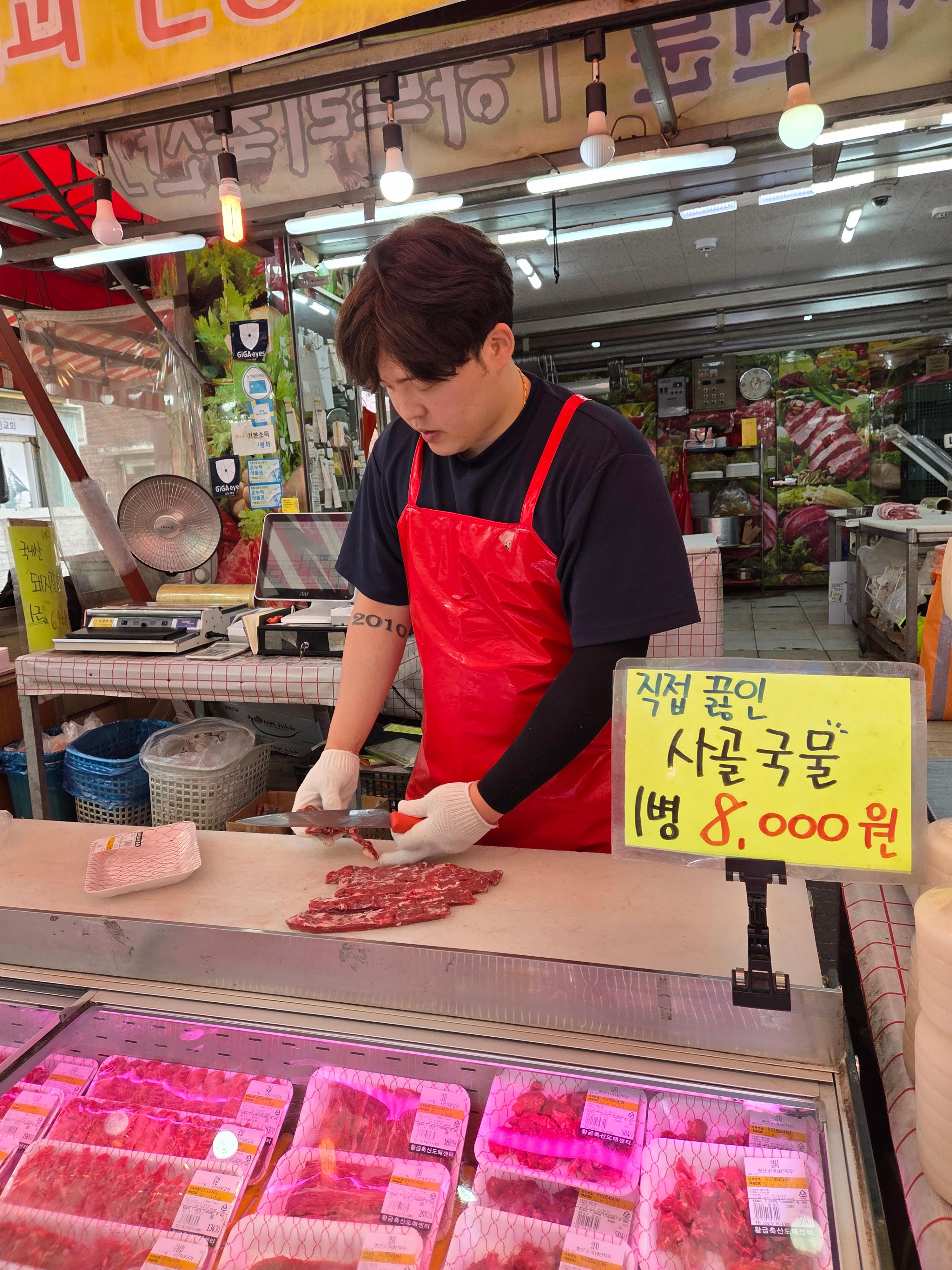 "그럼요~ 미역국에 필요한 고기 말씀이시죠?? 시장에서 뵙도록 하겠습니다!"